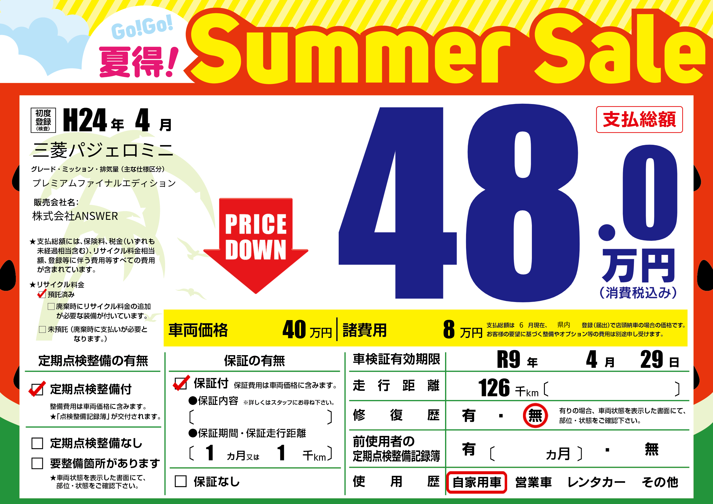 なし | 車検制限 | R9年4月29月 |