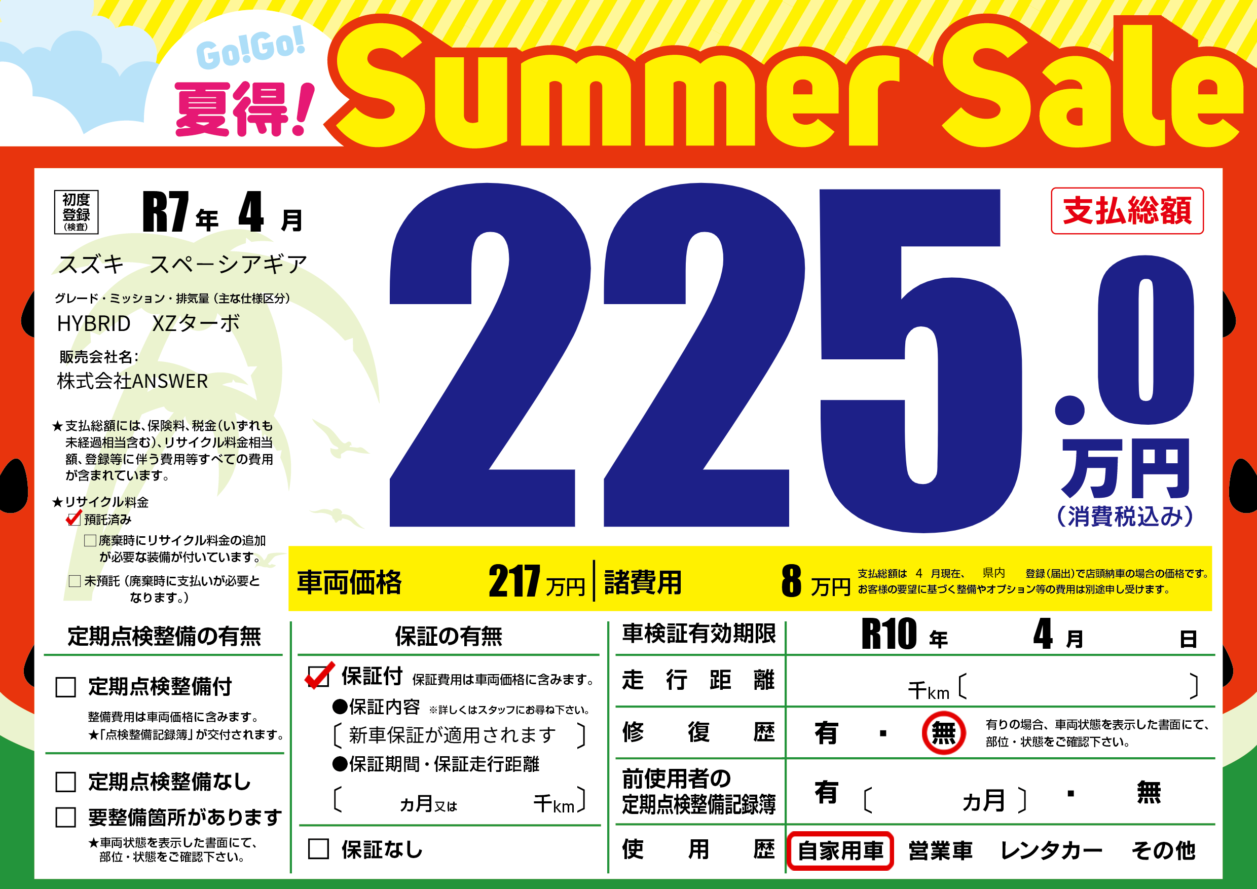 | 走行キロ | - | 初年度登録 | R7年4月 |