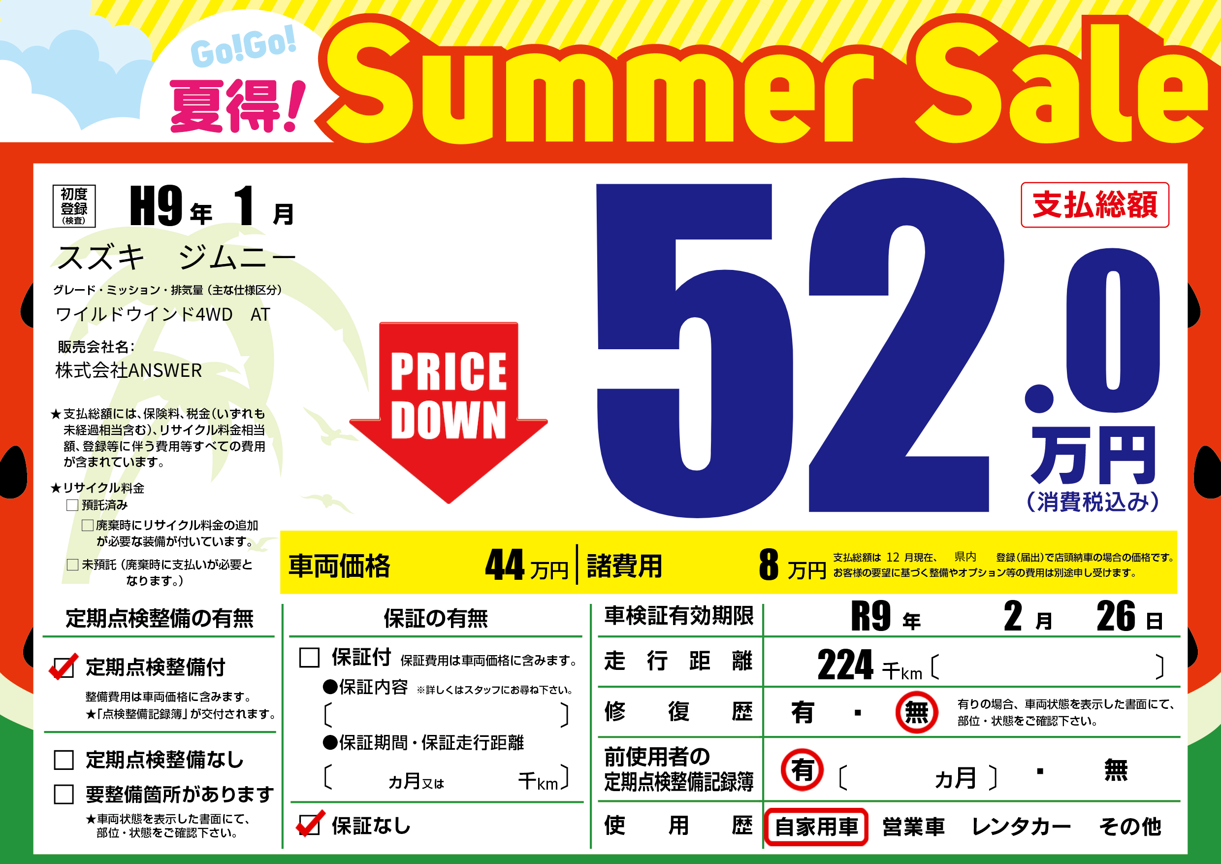 なし | 車検制限 | R9年2月26月 |