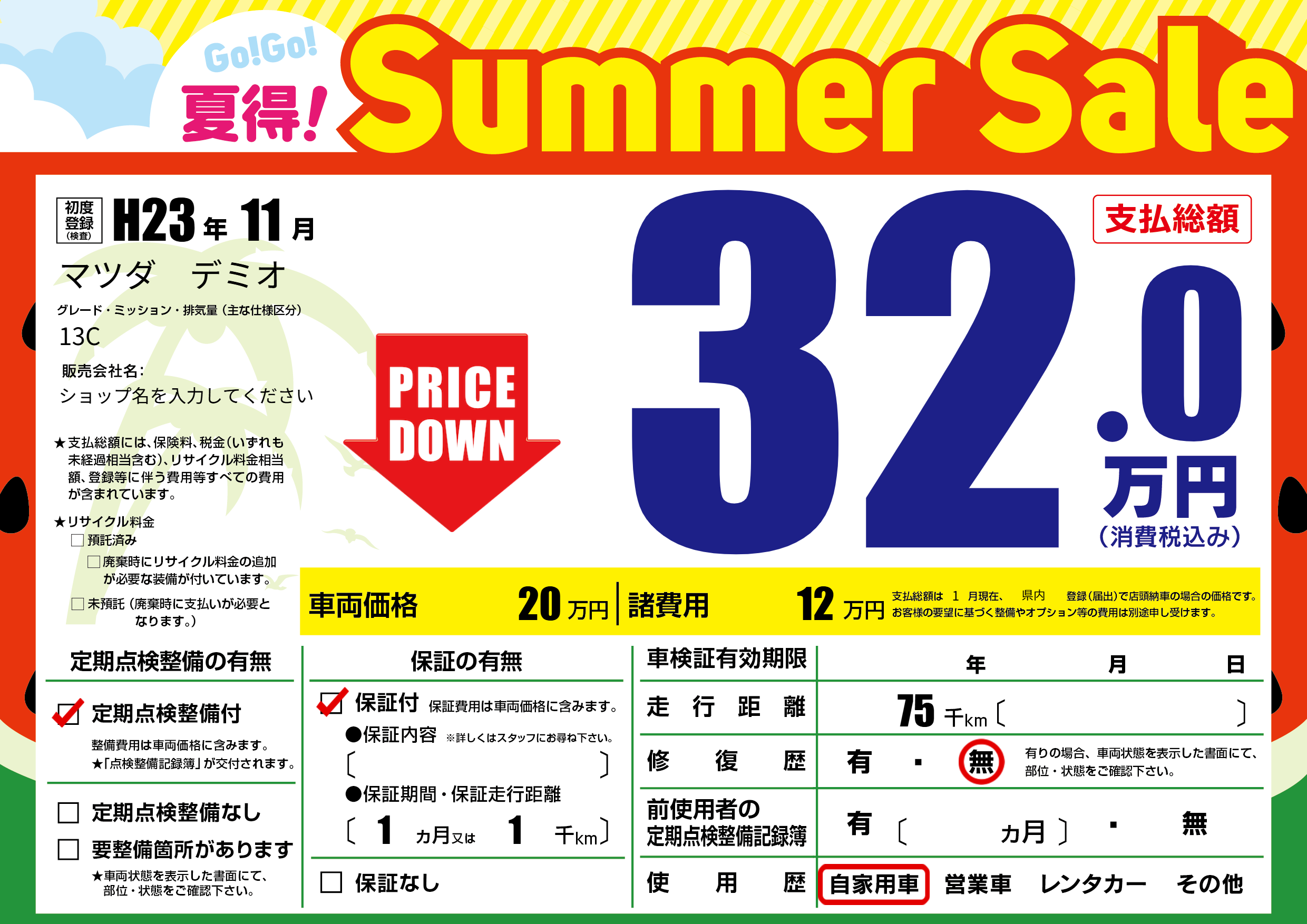 | 走行キロ | 7.5万km | 初年度登録 | H23年11月 |