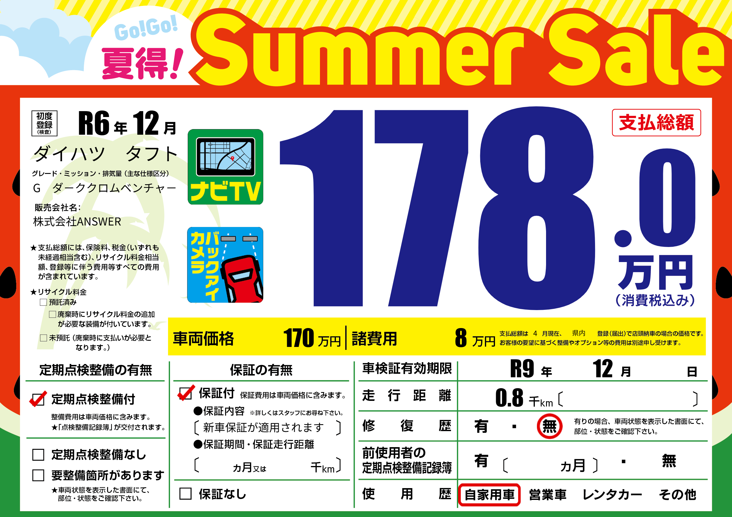 | 走行キロ | - | 初年度登録 | R6年12月 |