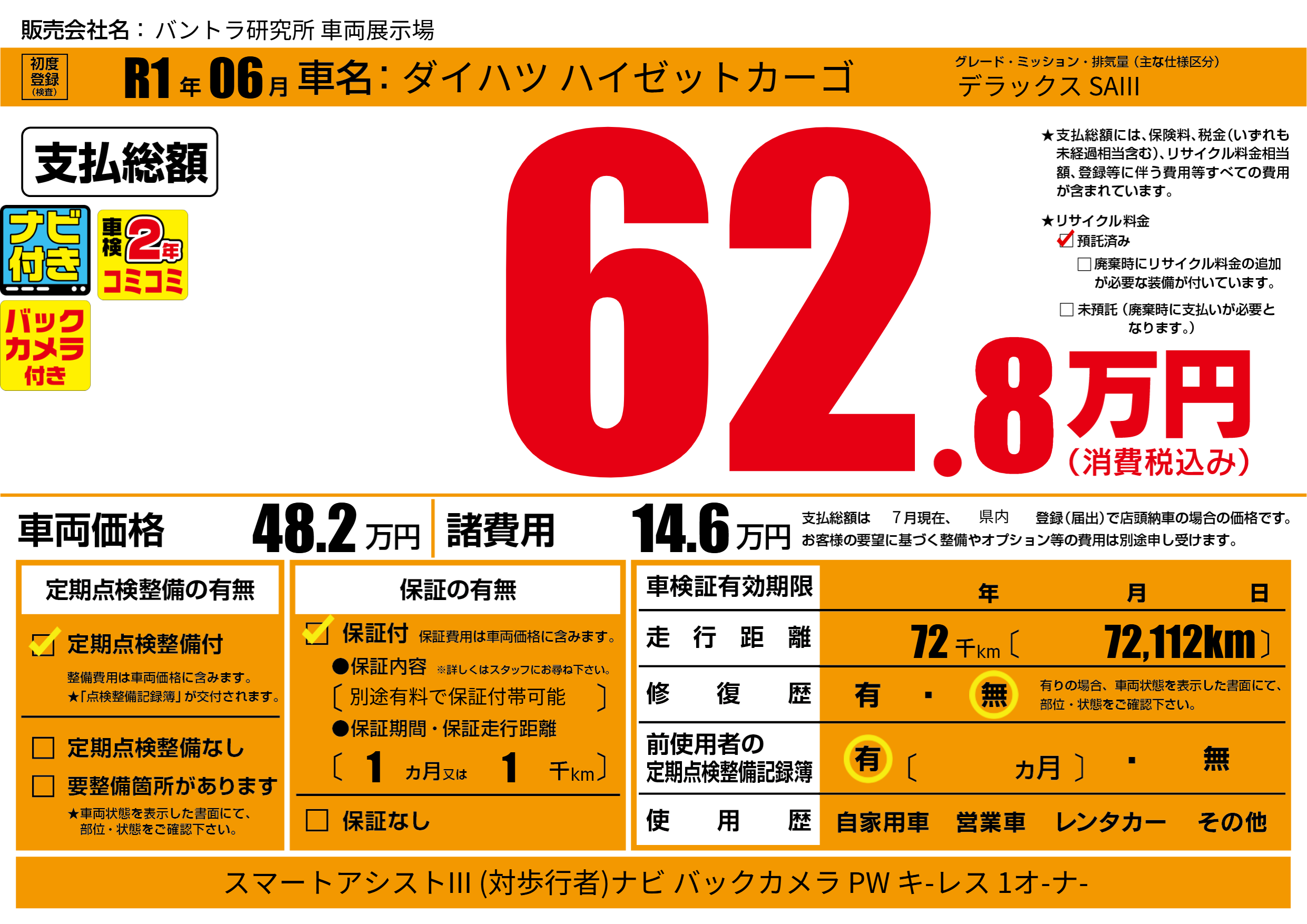 保証内容(別途有料で保証付帯可能) 1ヶ月または1千km