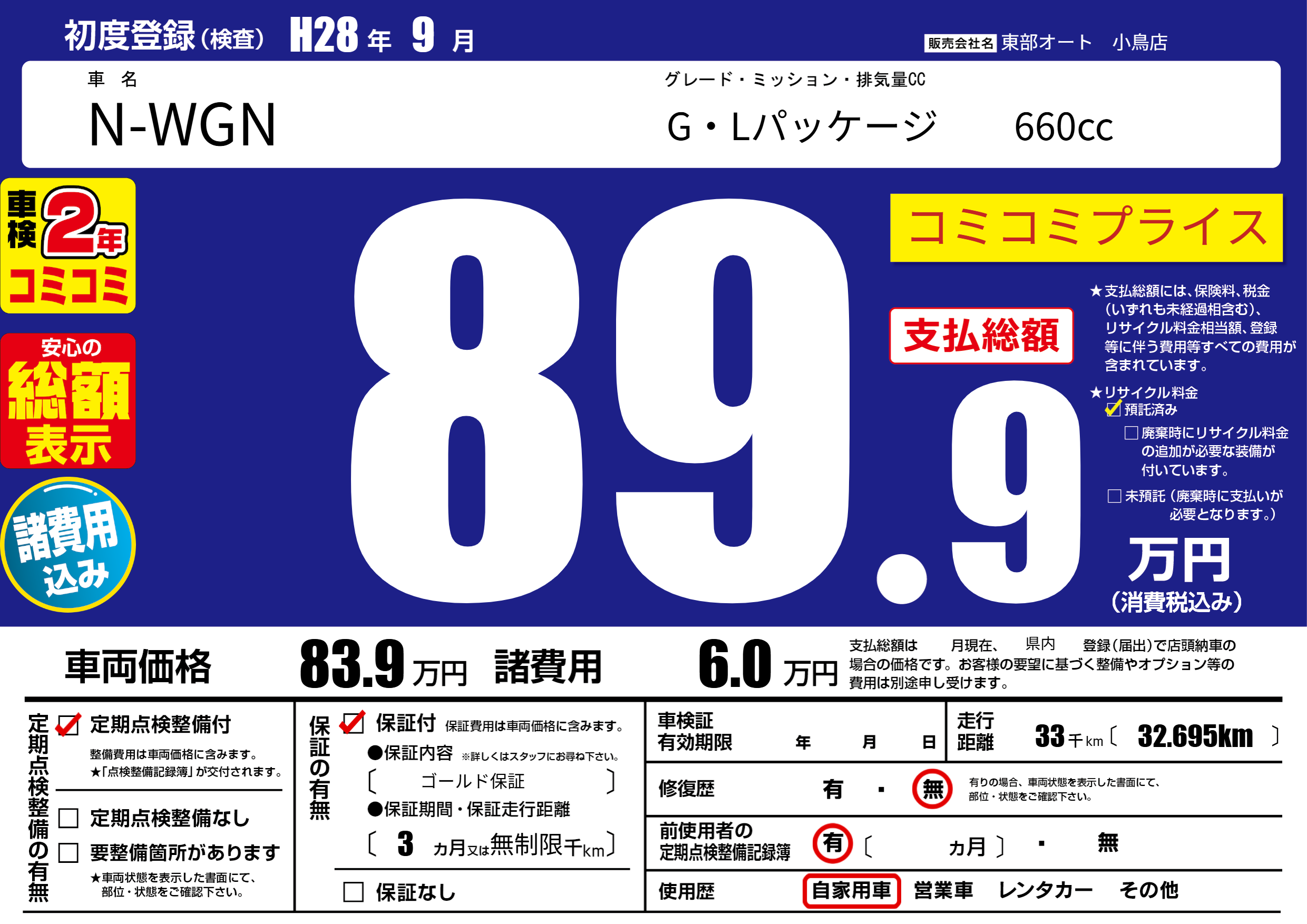 | 初年度登録 | H28年9月 | ||