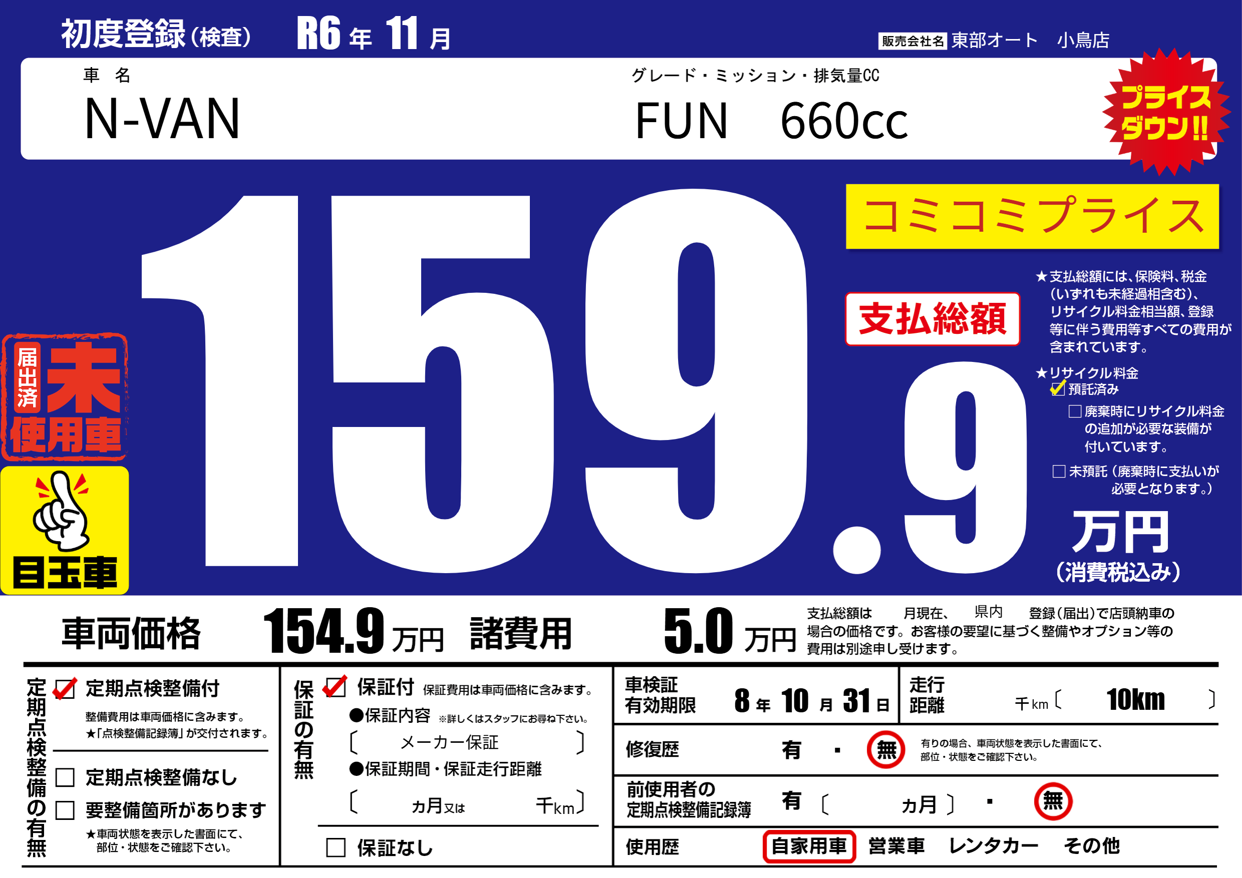 なし | 車検制限 | 8年10月31月 |