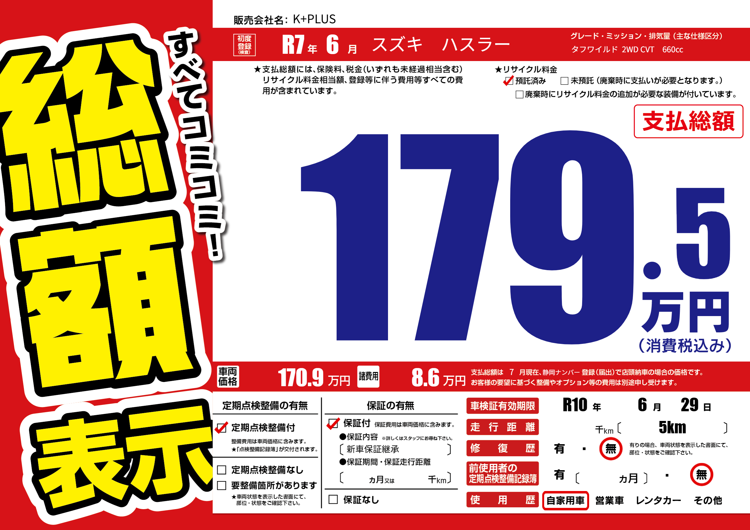 なし | 車検制限 | R10年6月29月 |