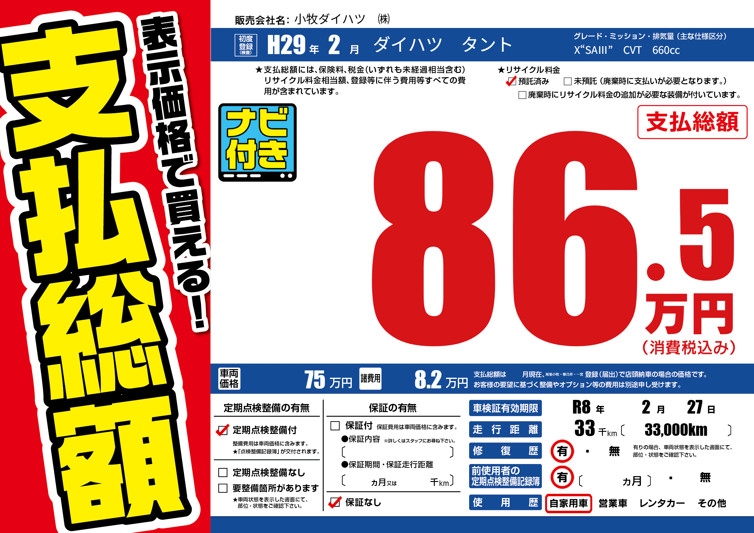 | 定期点検整備 | 定期点検整備あり | ||