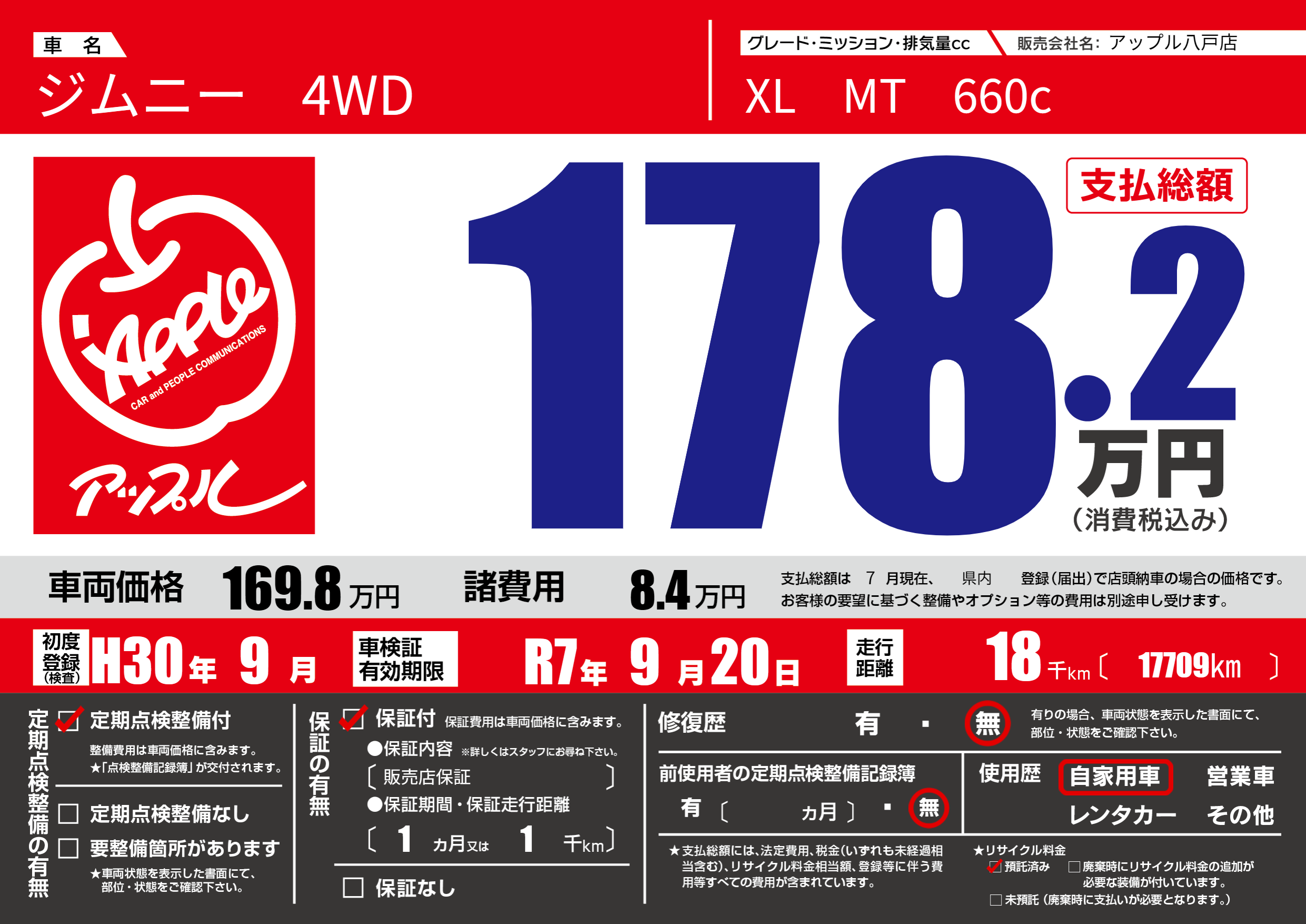 | 車名 | ジムニー 4WD | グレード ミッション 排気量 |