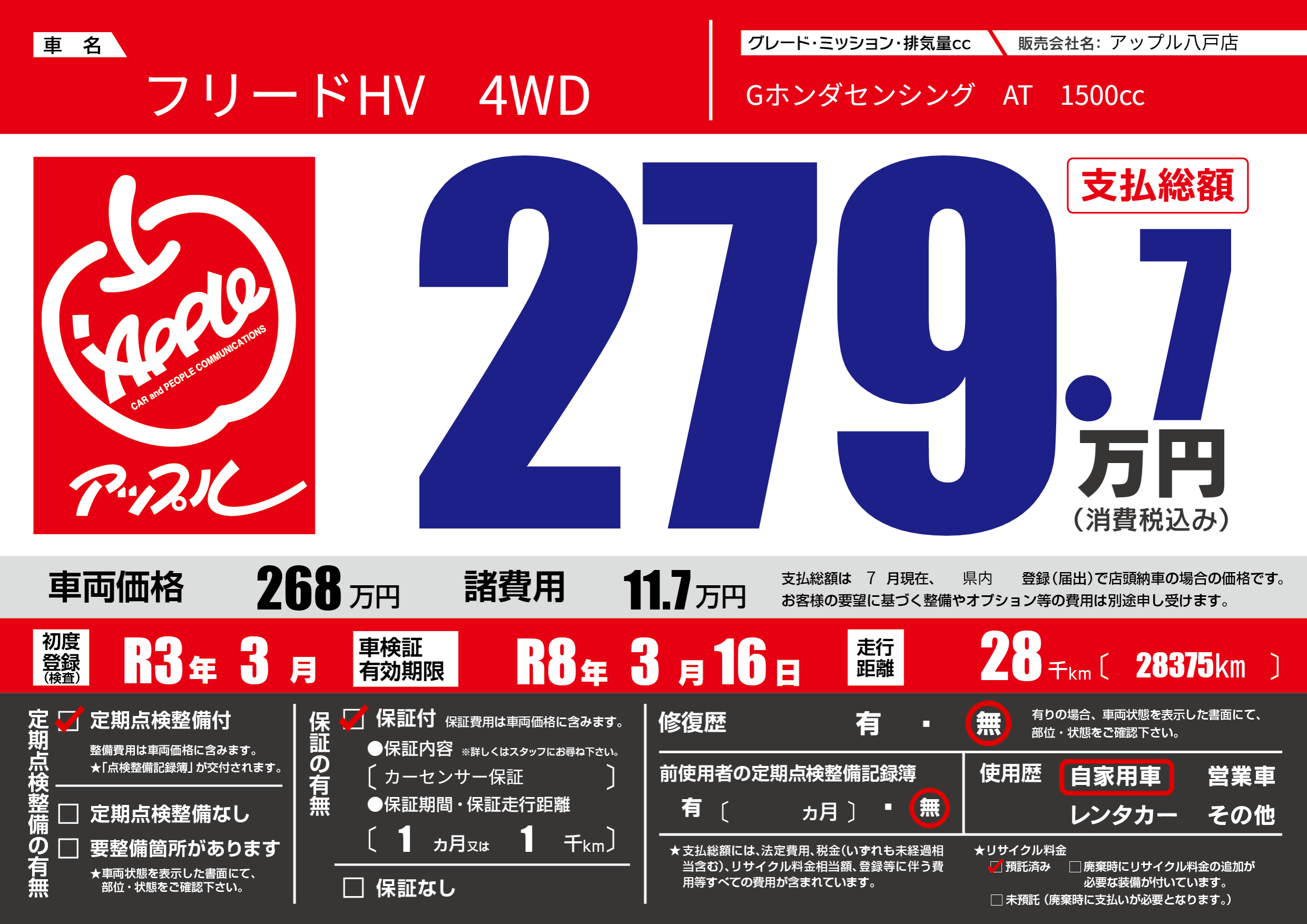 | 定期点検整備 | 定期点検整備あり | ||