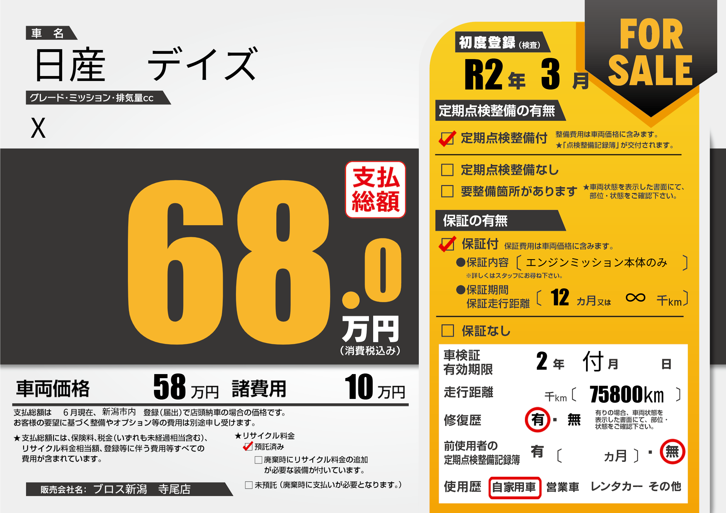 | 走行キロ | - | 初年度登録 | R2年3月 |
