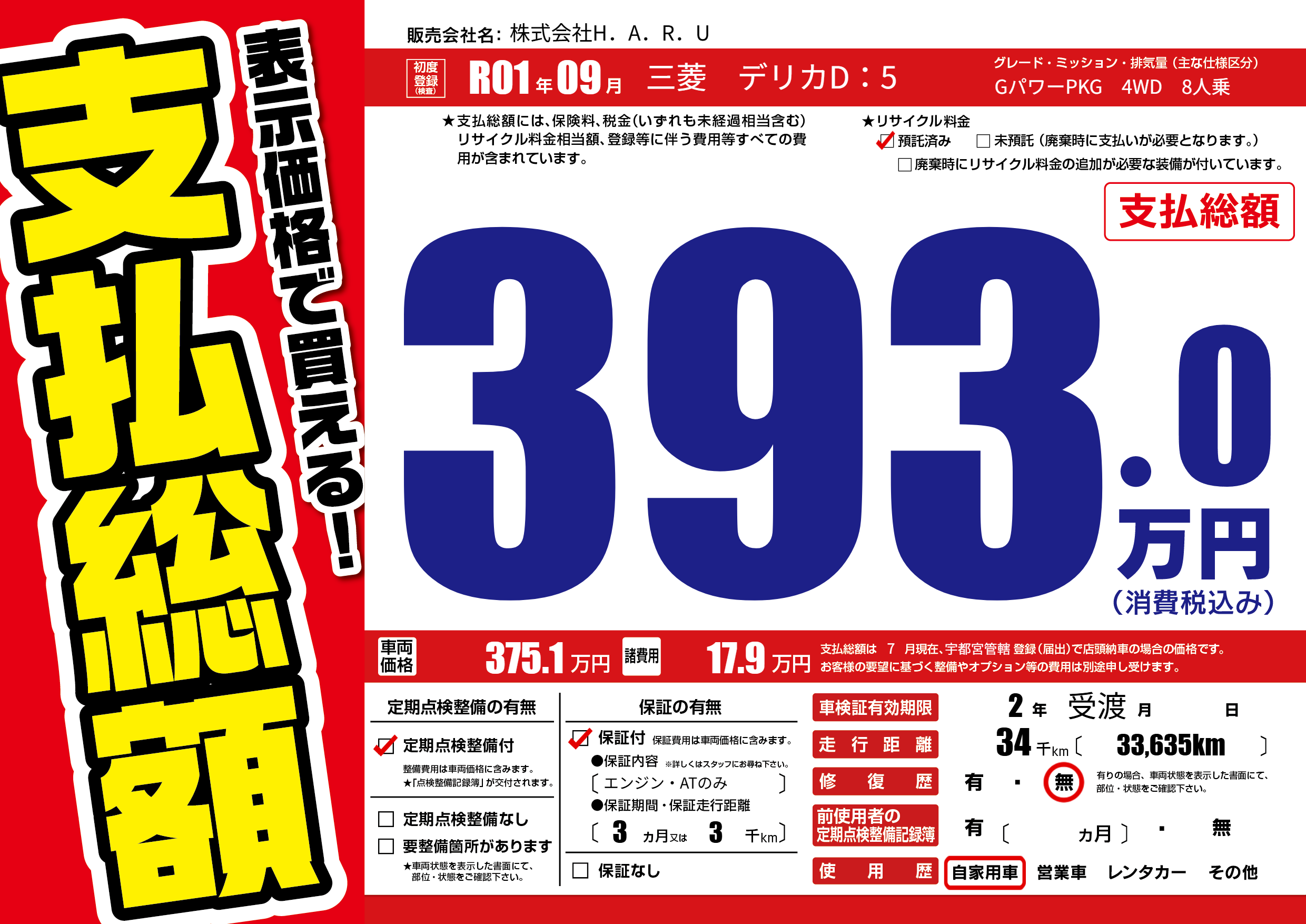 | 走行キロ | 3.4万km | 初年度登録 | R01年09月 |