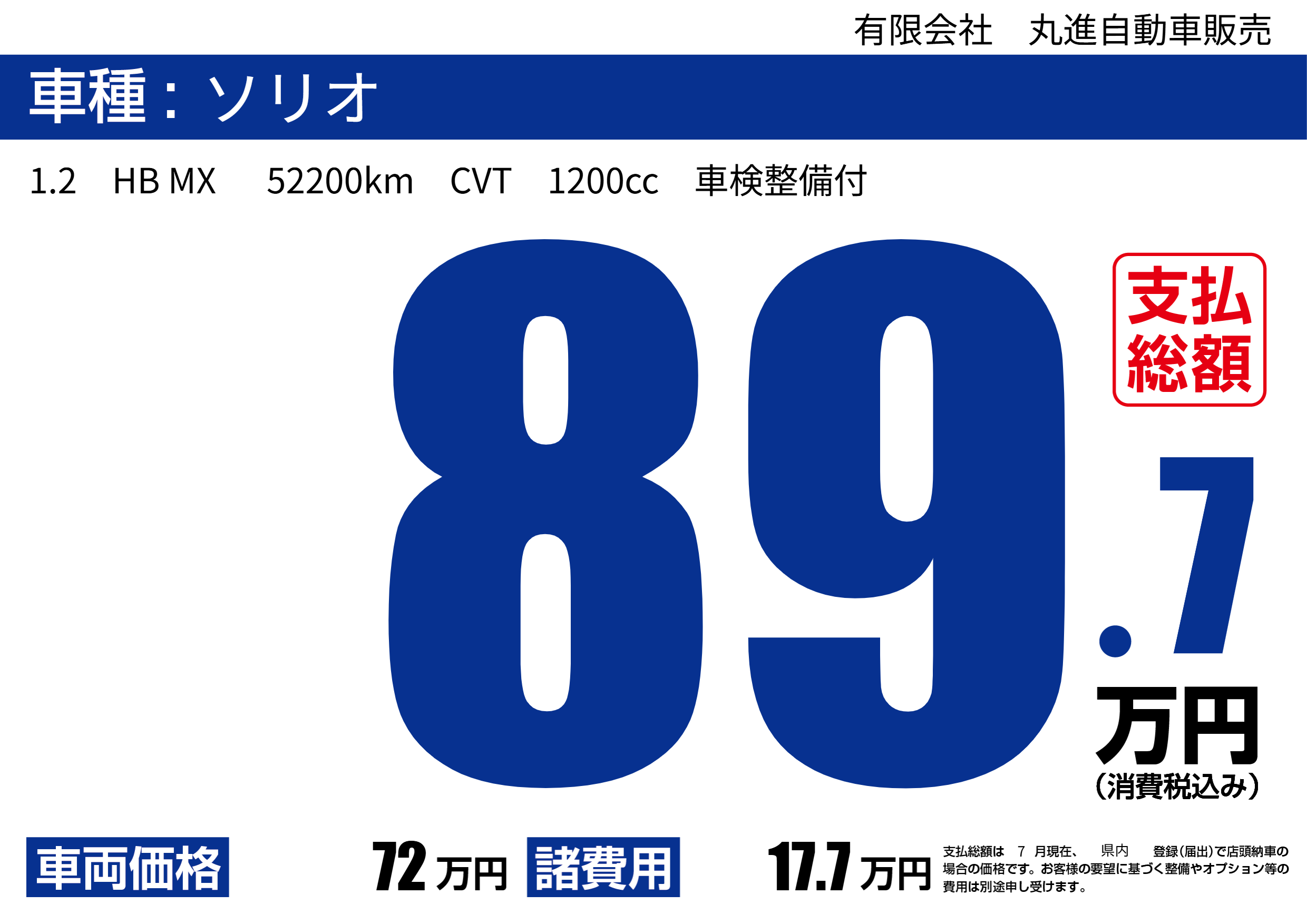 | 車名 | ソリオ | グレード ミッション 排気量 |