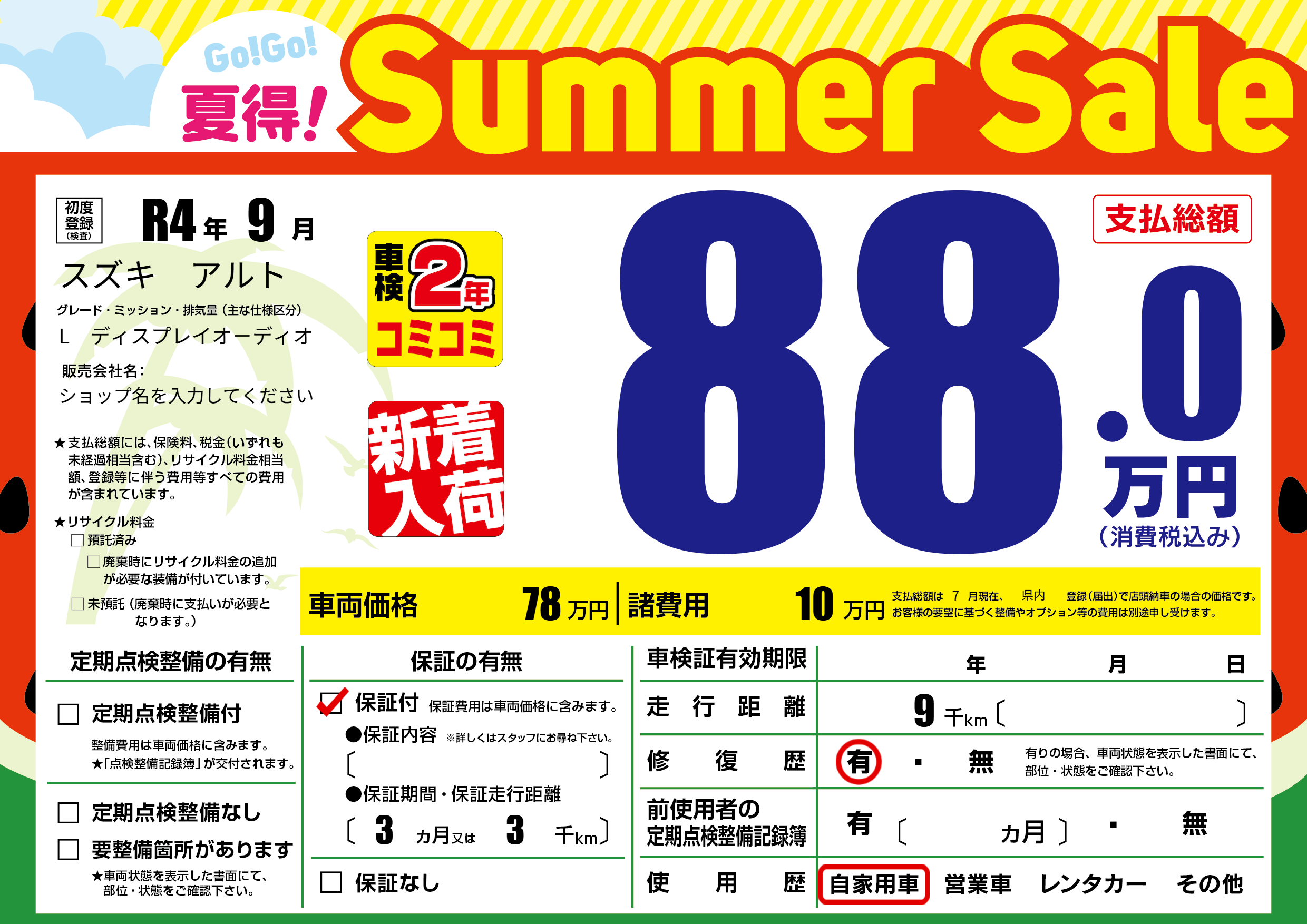 保証付き 保証内容(---) 3ヶ月または(3)千kmまで |
