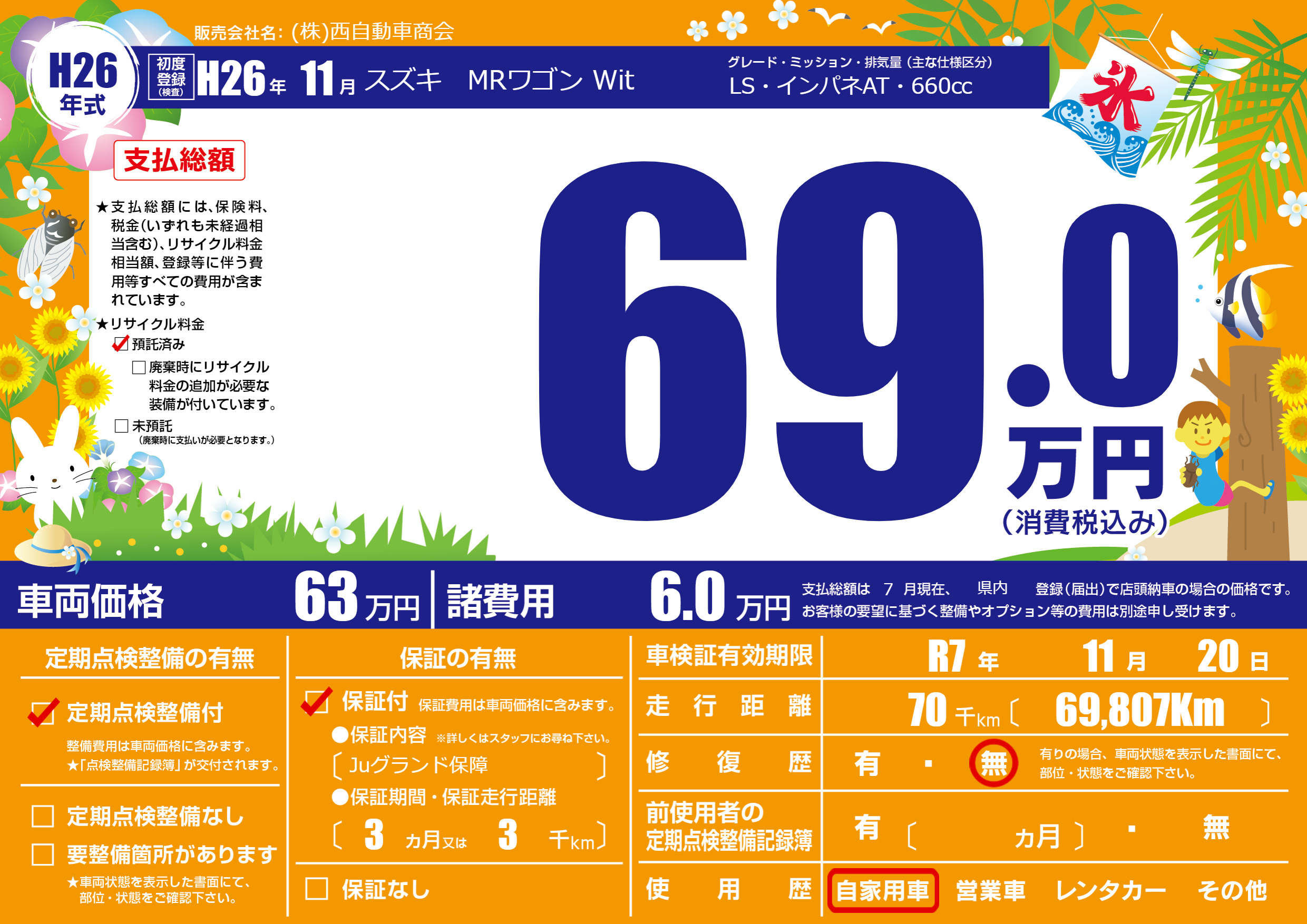 | 車検制限 | R7年 11月 20日 | ||