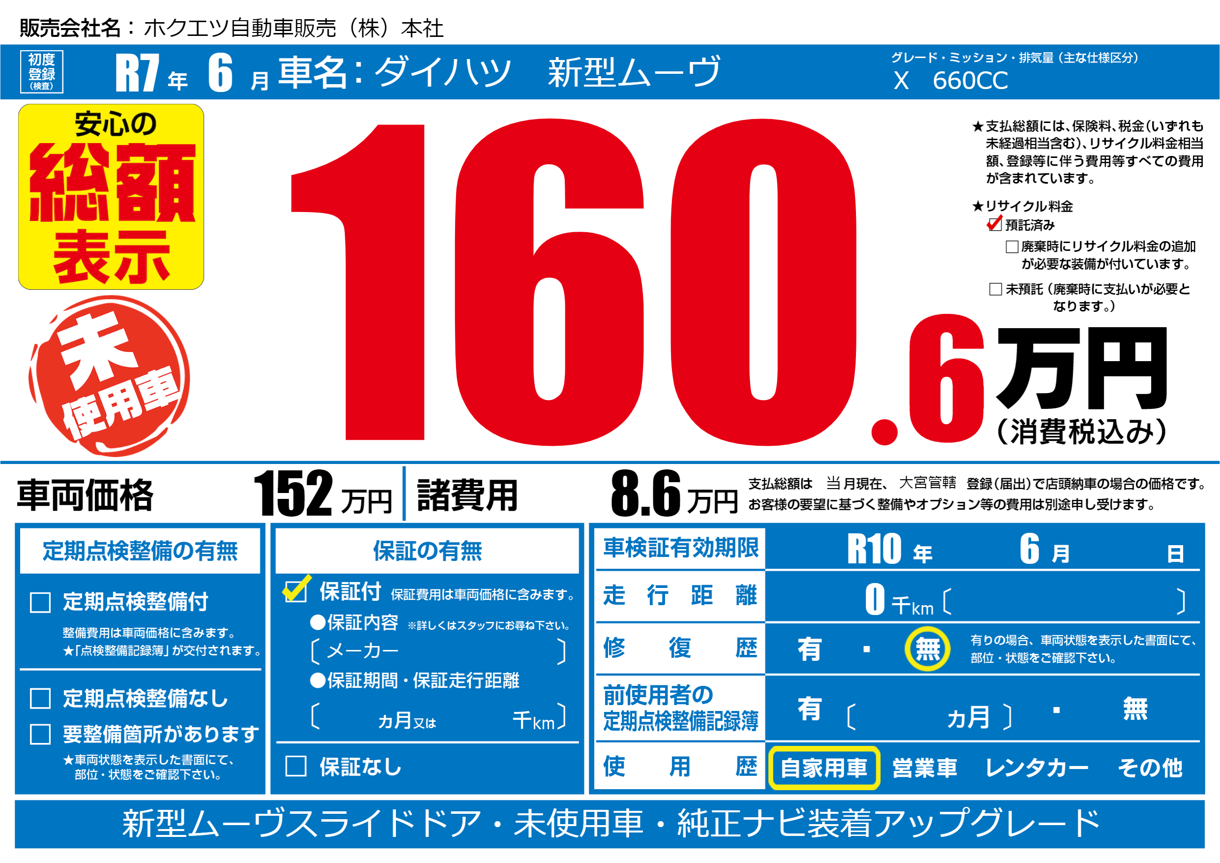 | 走行キロ | - | 初年度登録 | R7年6月 |