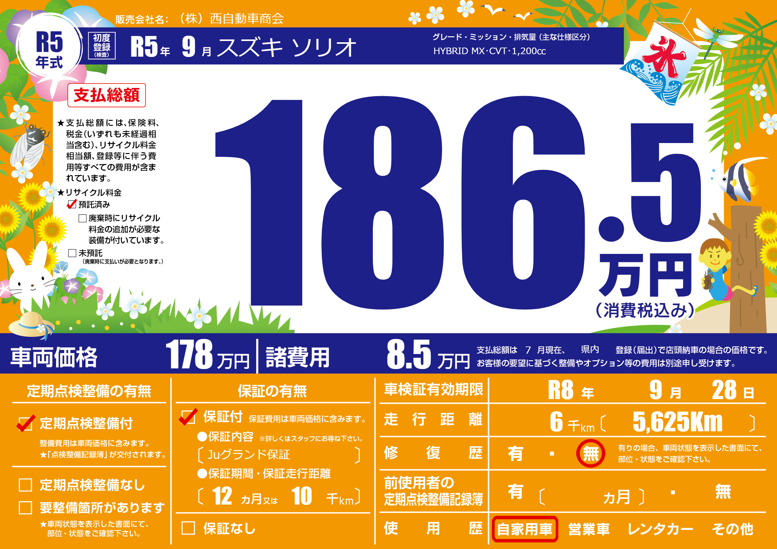 | 走行キロ | 0.6万km | 初年度登録 | R5年9月 |