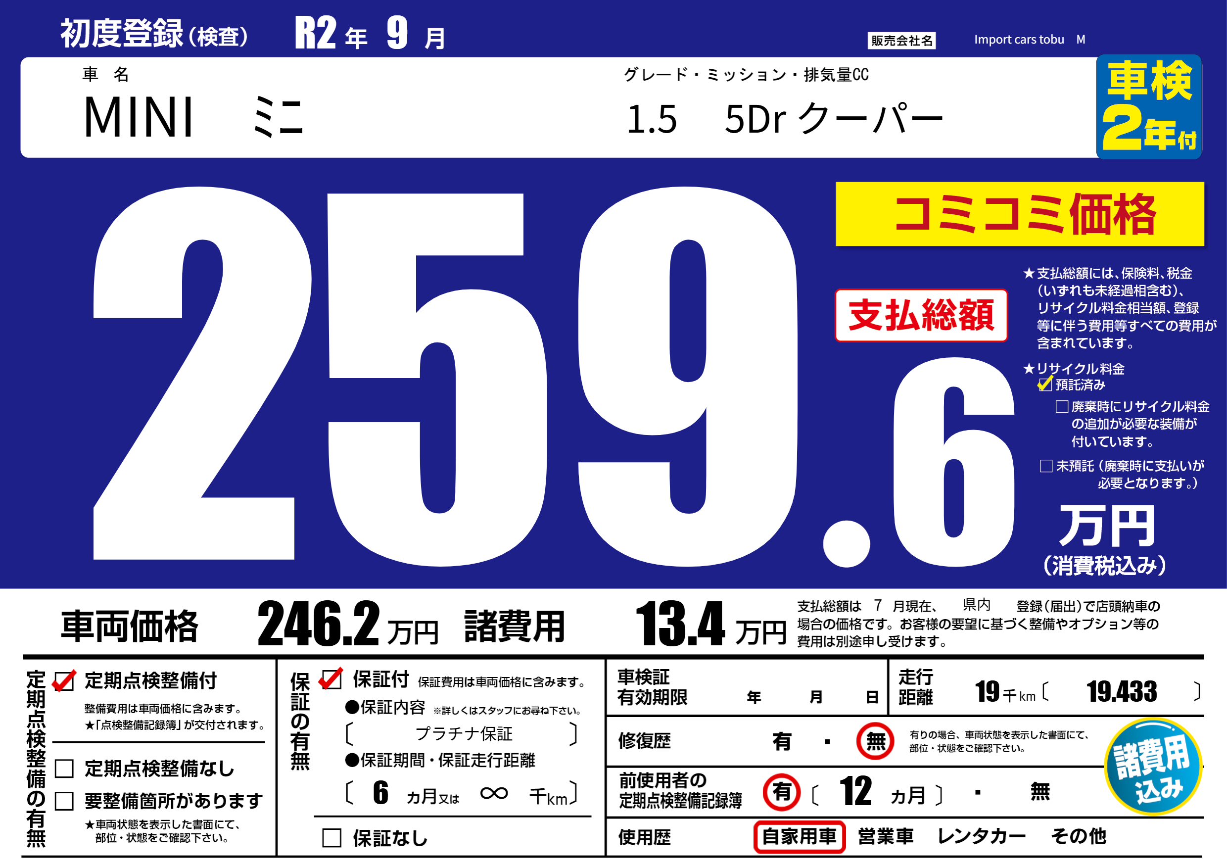保証付き 保証内容( プラチナ保証) 6ヶ月または(∞)千kmまで |