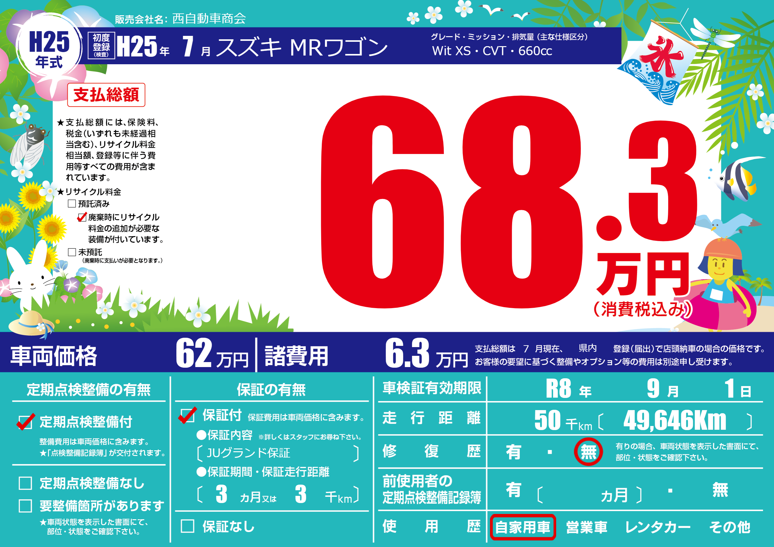 | 走行キロ | 5万km | 初年度登録 | H25年7月 |