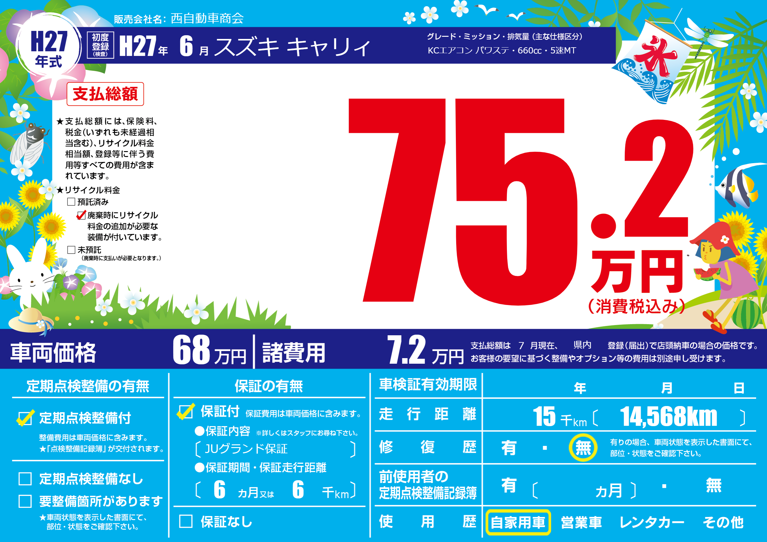 保証付き 保証内容(JUグランド保証) 6ヶ月または6千km |