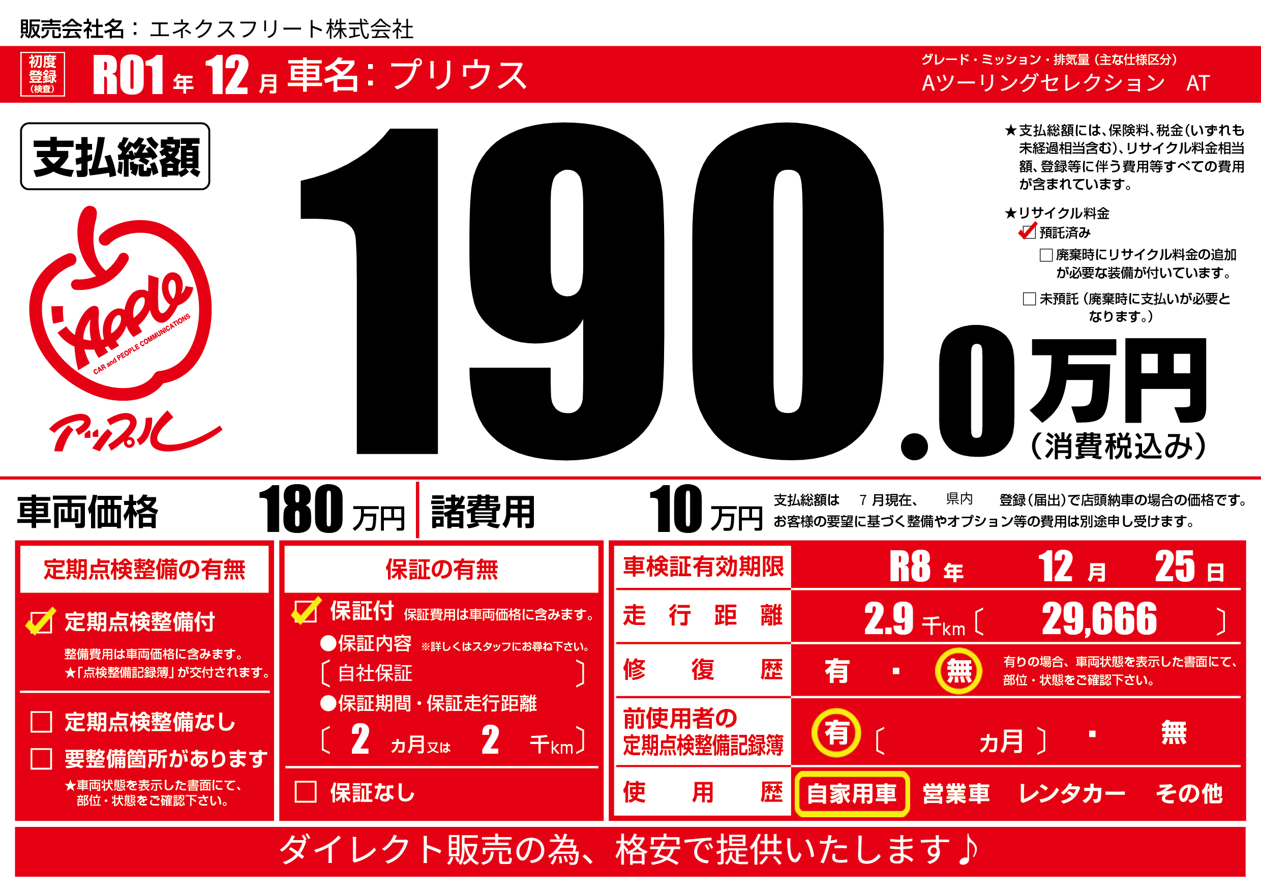 | 車名 | プリウス | グレード ミッション 排気量 |