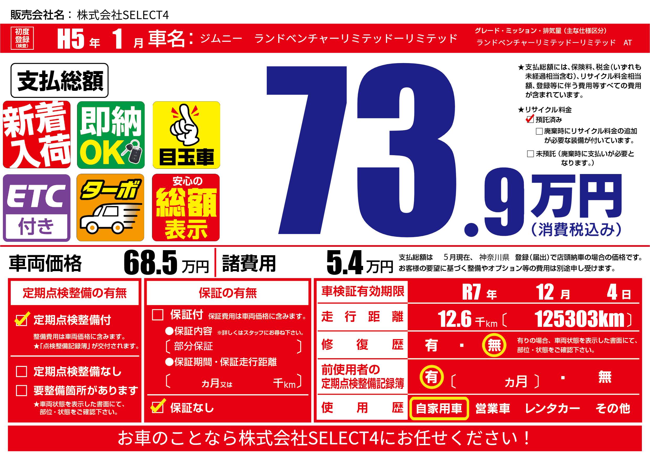| 車検制限 | R7年 12月 4日 | ||