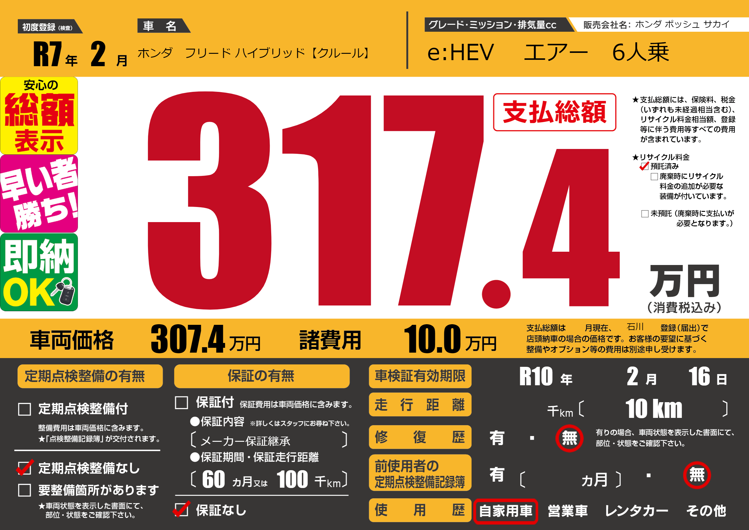 なし | 車検制限 | R10年2月16月 |