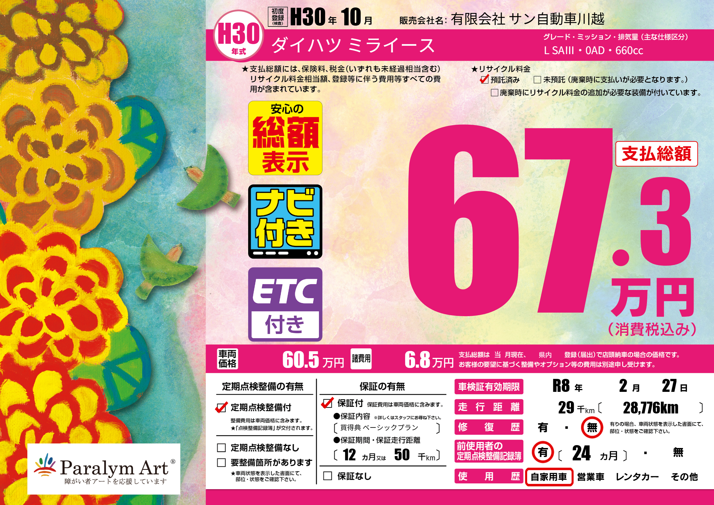 | 走行キロ | 2.9万km | 初年度登録 | H30年10月 |