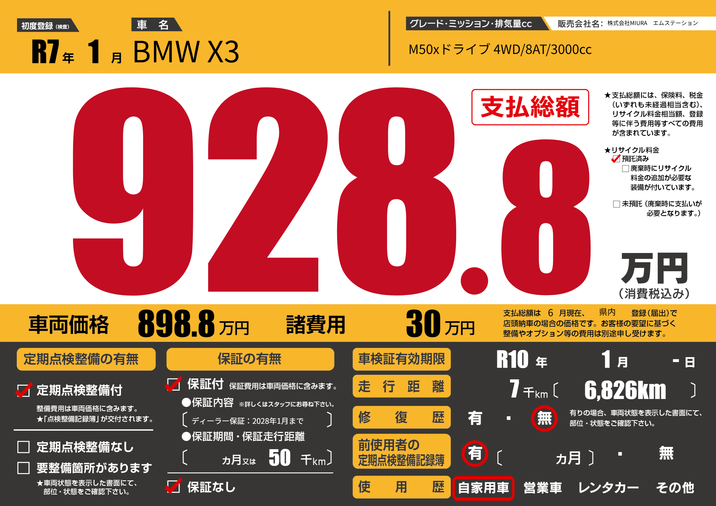 | 車名 | BMW X3 | グレード ミッション 排気量 |