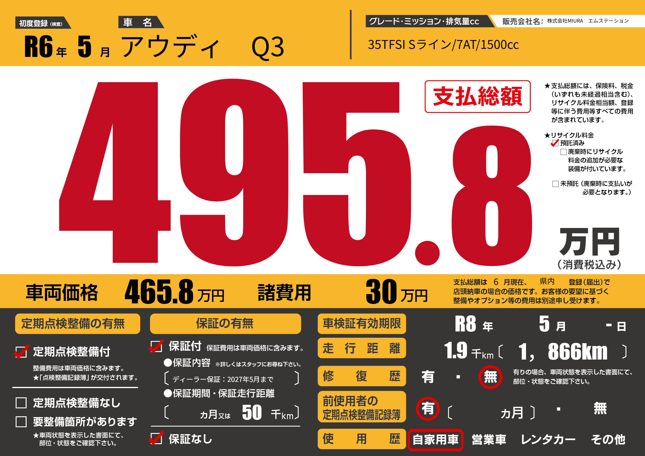 | 車名 | アウディ Q3 | グレード ミッション 排気量 |