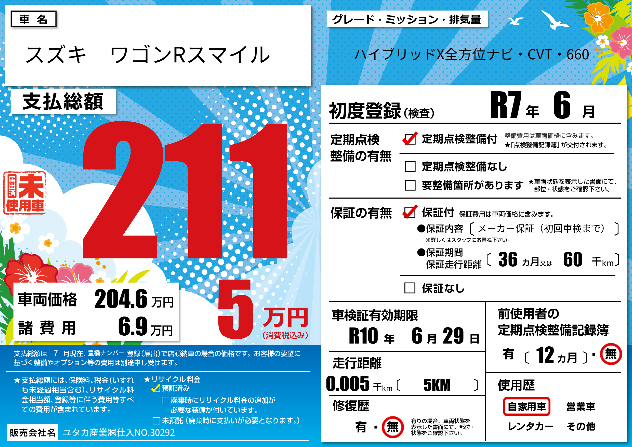 | 走行キロ | - | 初年度登録 | R7年6月 |