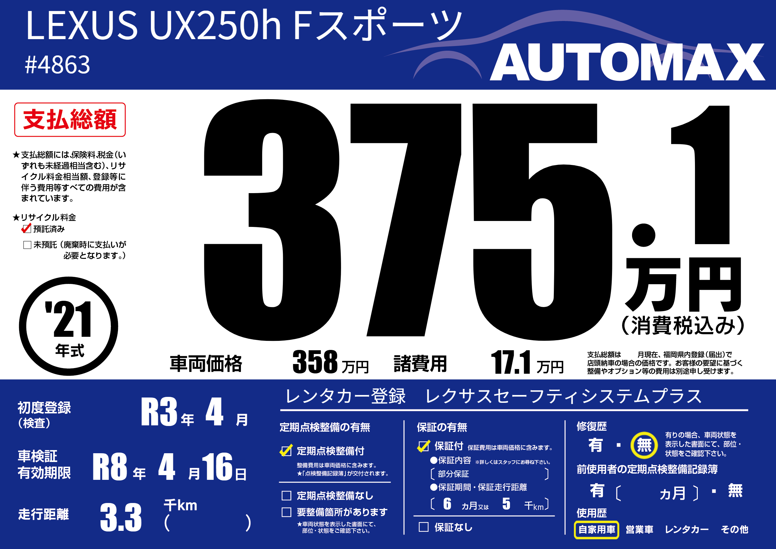 | 車検制限 | R8年 4月 16日 | ||