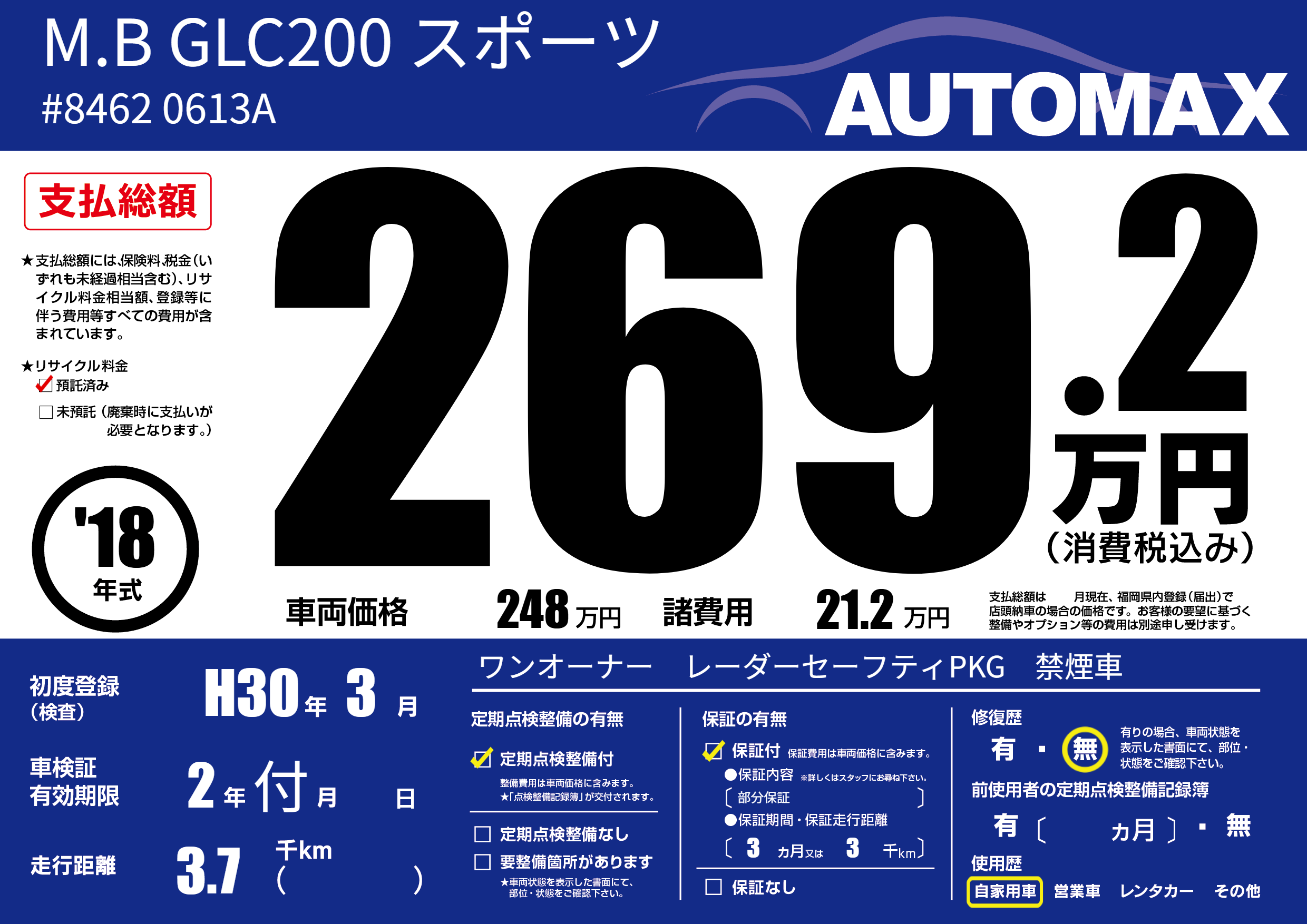 | 車名 | M.B GLC200 スポーツ | グレード ミッション 排気量 |