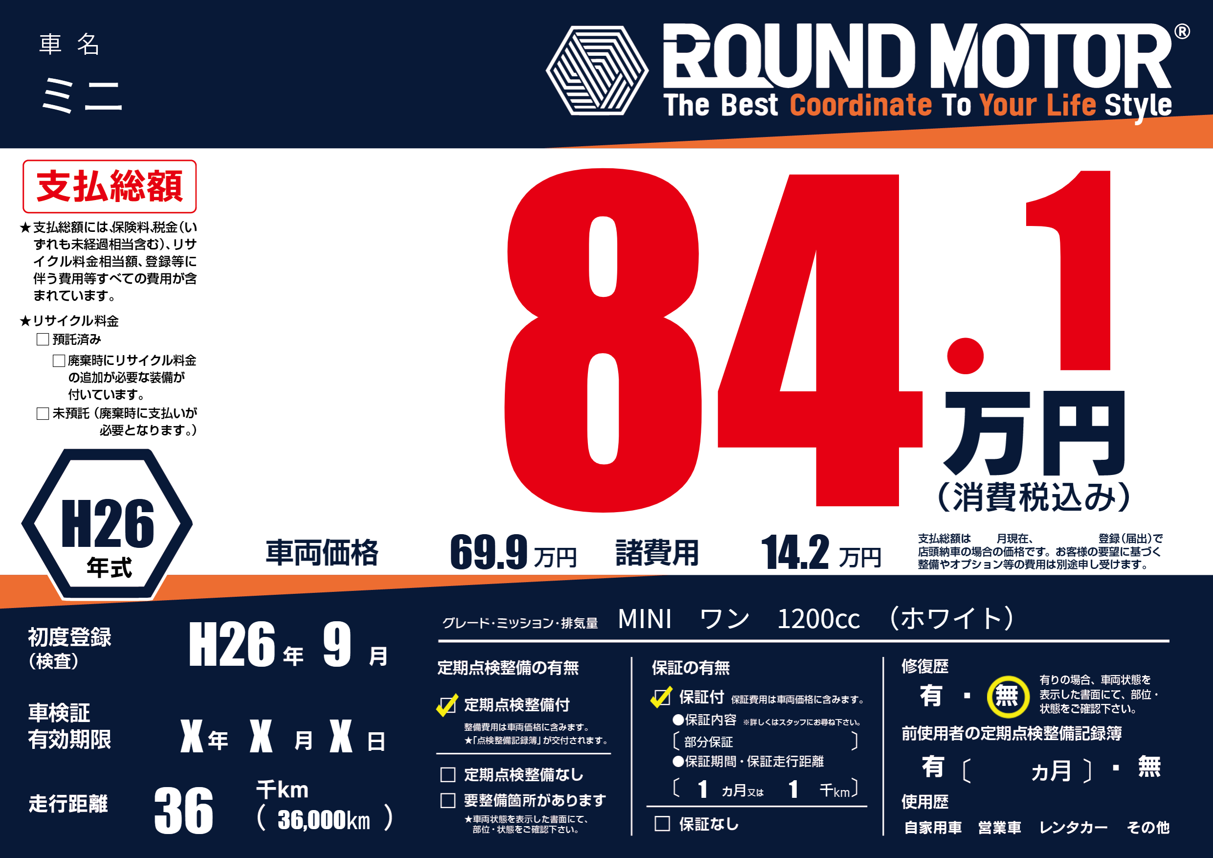 | 初年度登録 | H26年9月 | ||