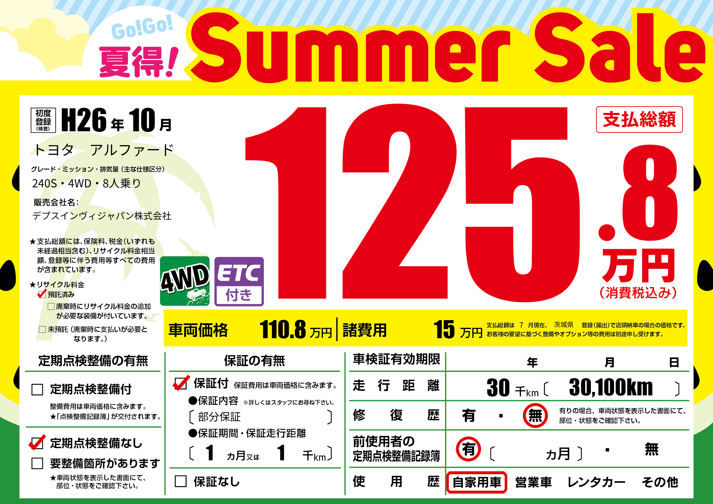 | 走行キロ | 3万km | 初年度登録 | H26年10月 |