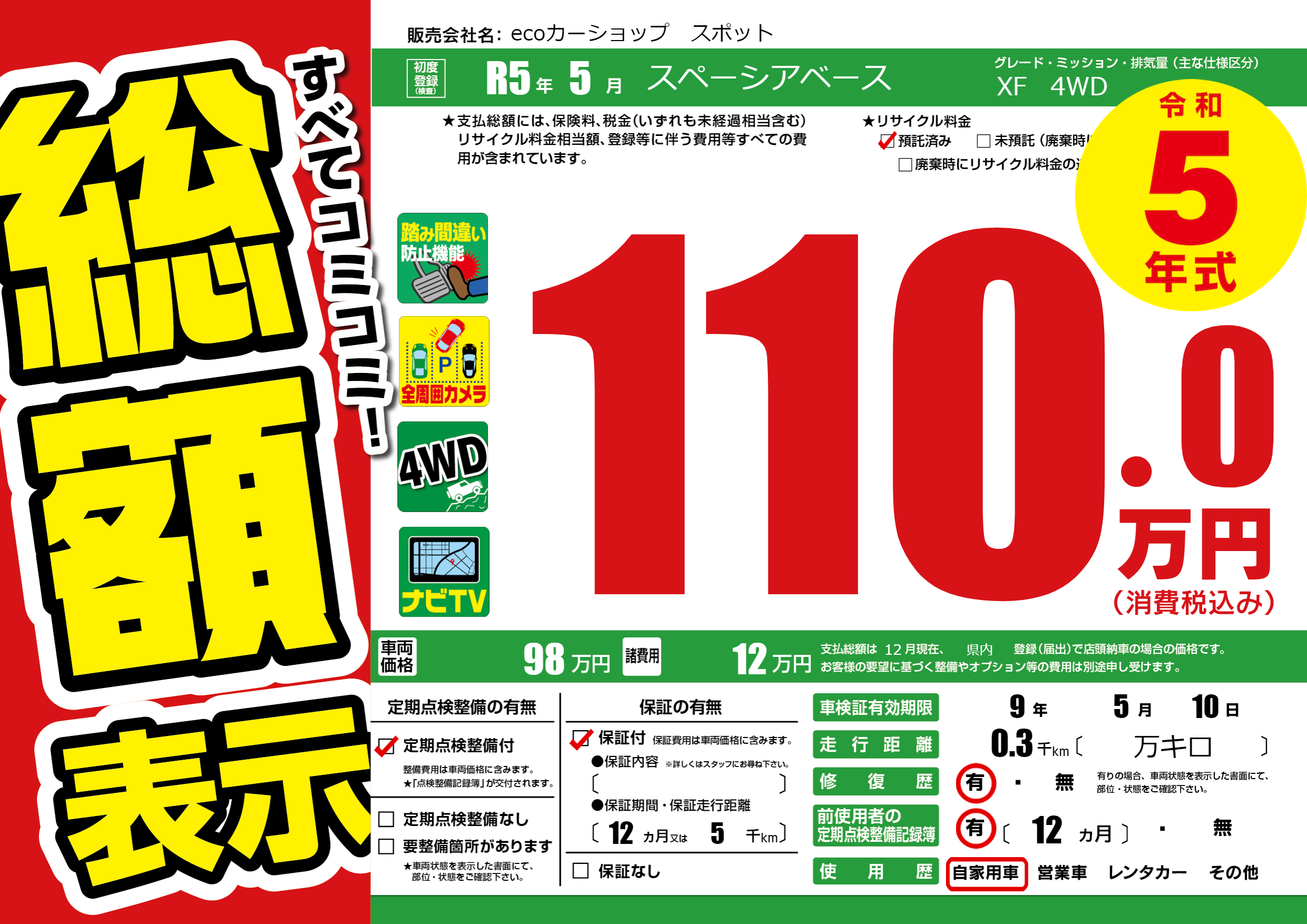 | 車検制限 | 9年 5月 10日 | ||