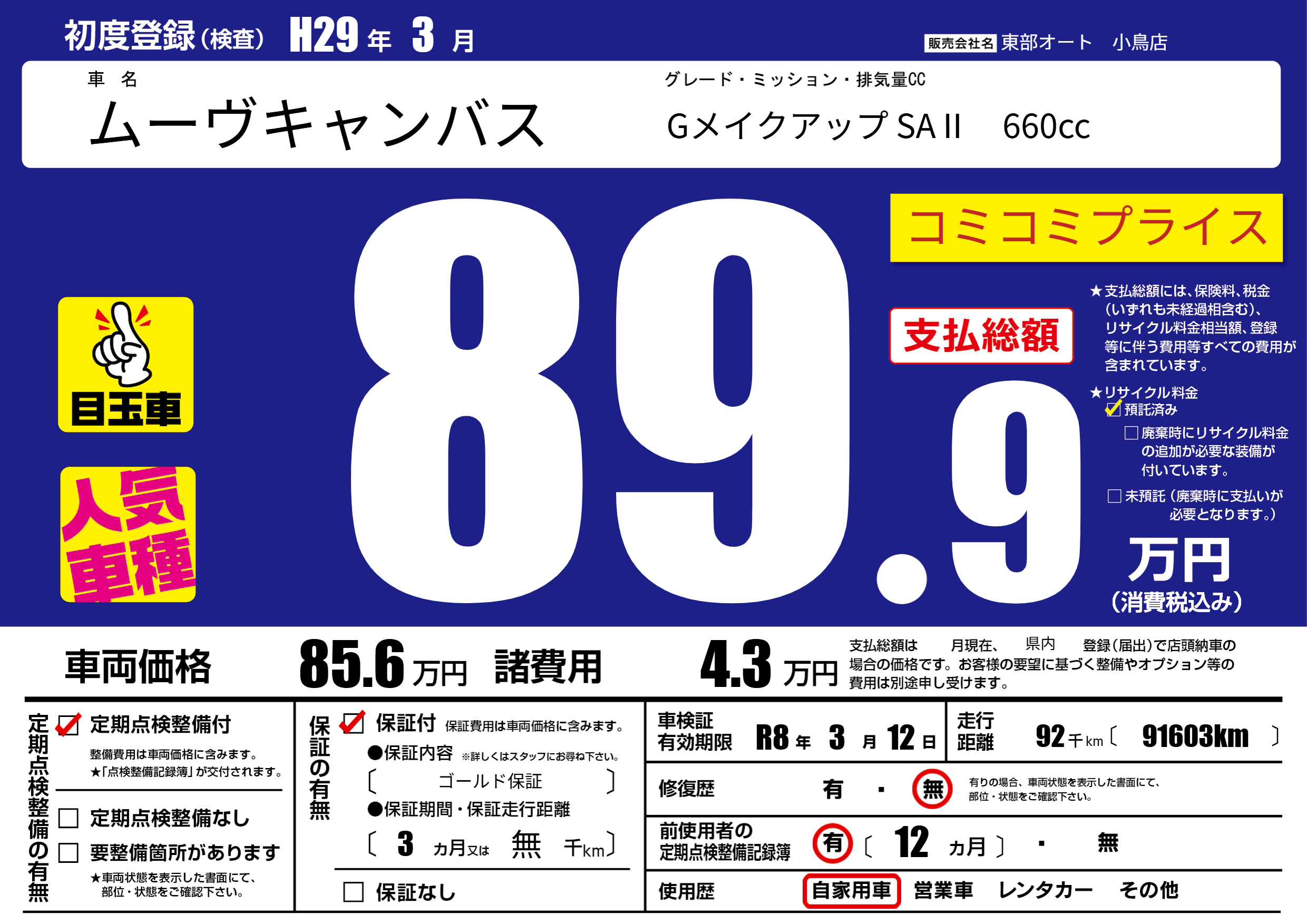 保証付き 保証内容( ゴールド保証) 3ヶ月または(無)千kmまで |