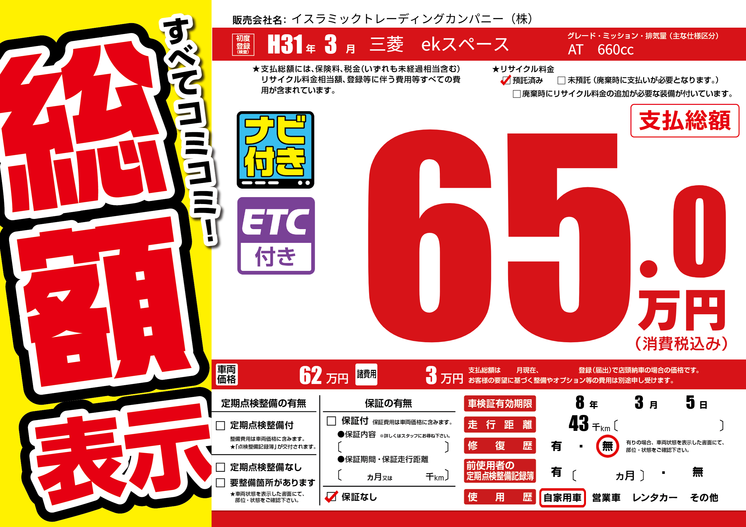| 車検制限 | 8年 3月 5日 | ||