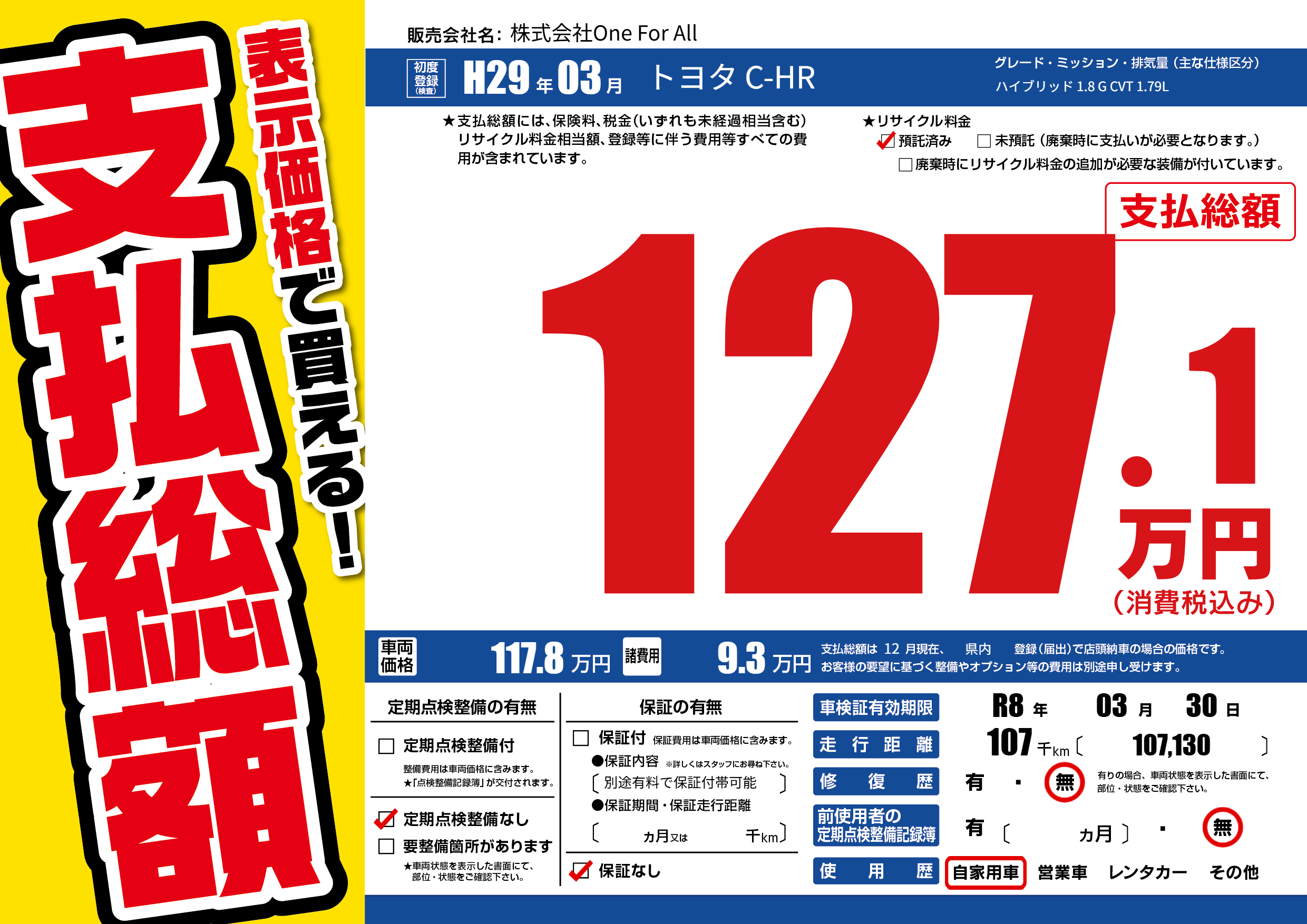 なし | 車検制限 | R8年03月30月 |