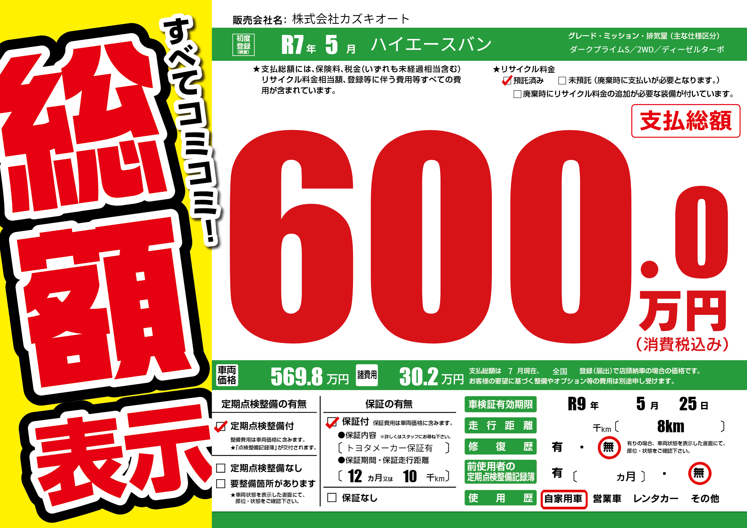 | 走行キロ | - | 初年度登録 | R7年5月 |
