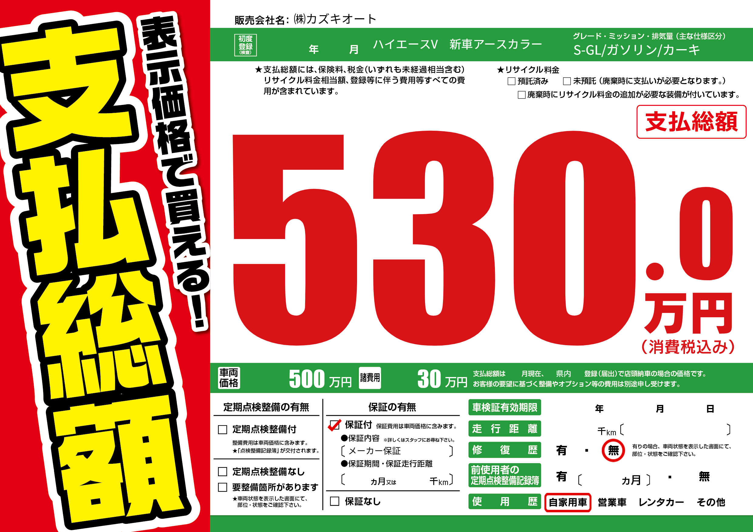 保証付き 保証内容(メーカー保証) ---ヶ月または()千kmまで |