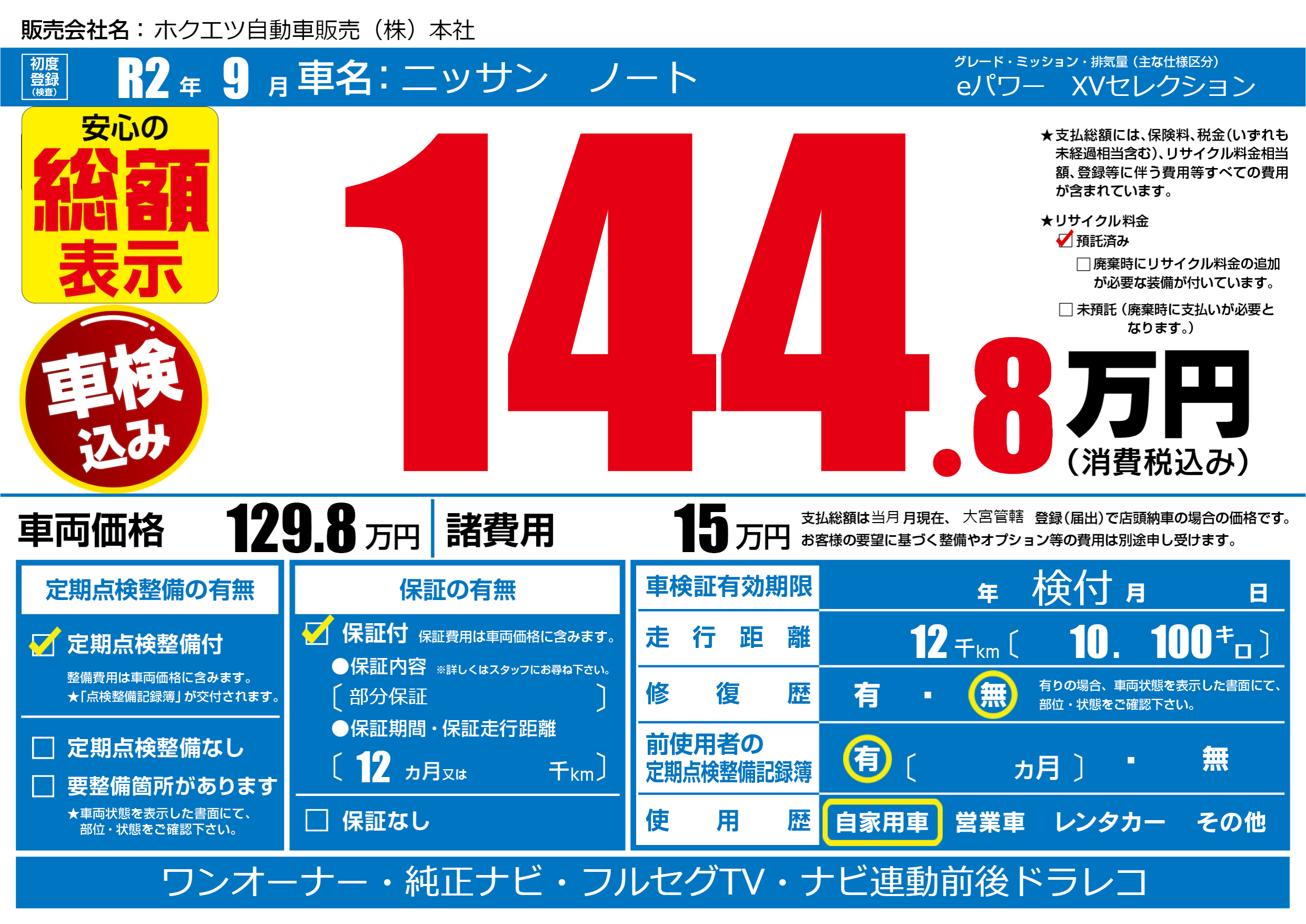 保証付き 保証内容(部分保証) 12ヶ月または()千kmまで |