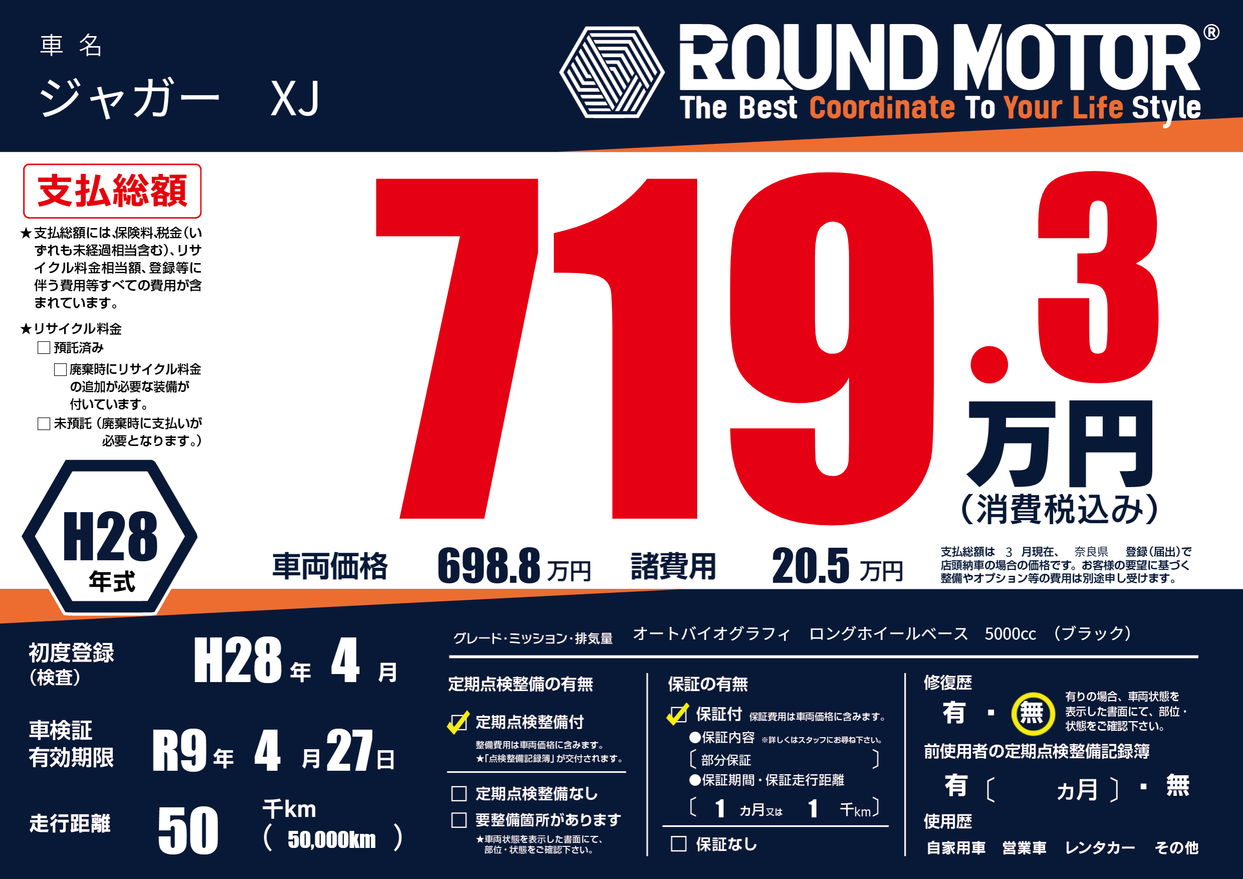 | 車名 | ジャガー XJ | グレード ミッション 排気量 |