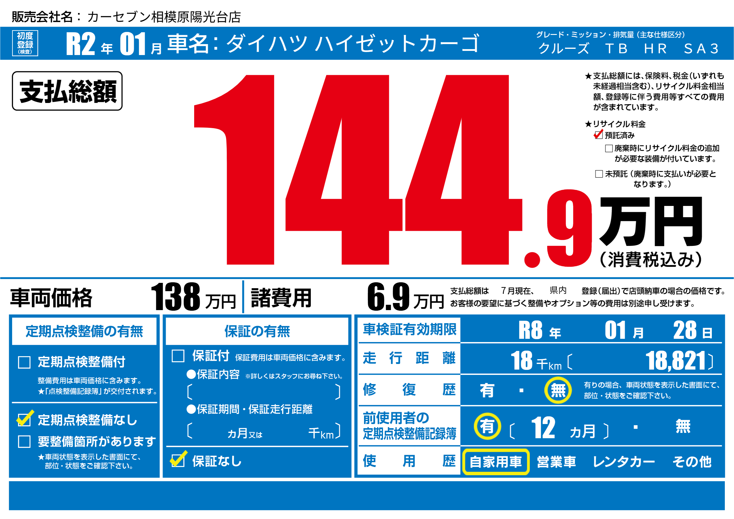 なし | 車検制限 | R8年01月28月 |