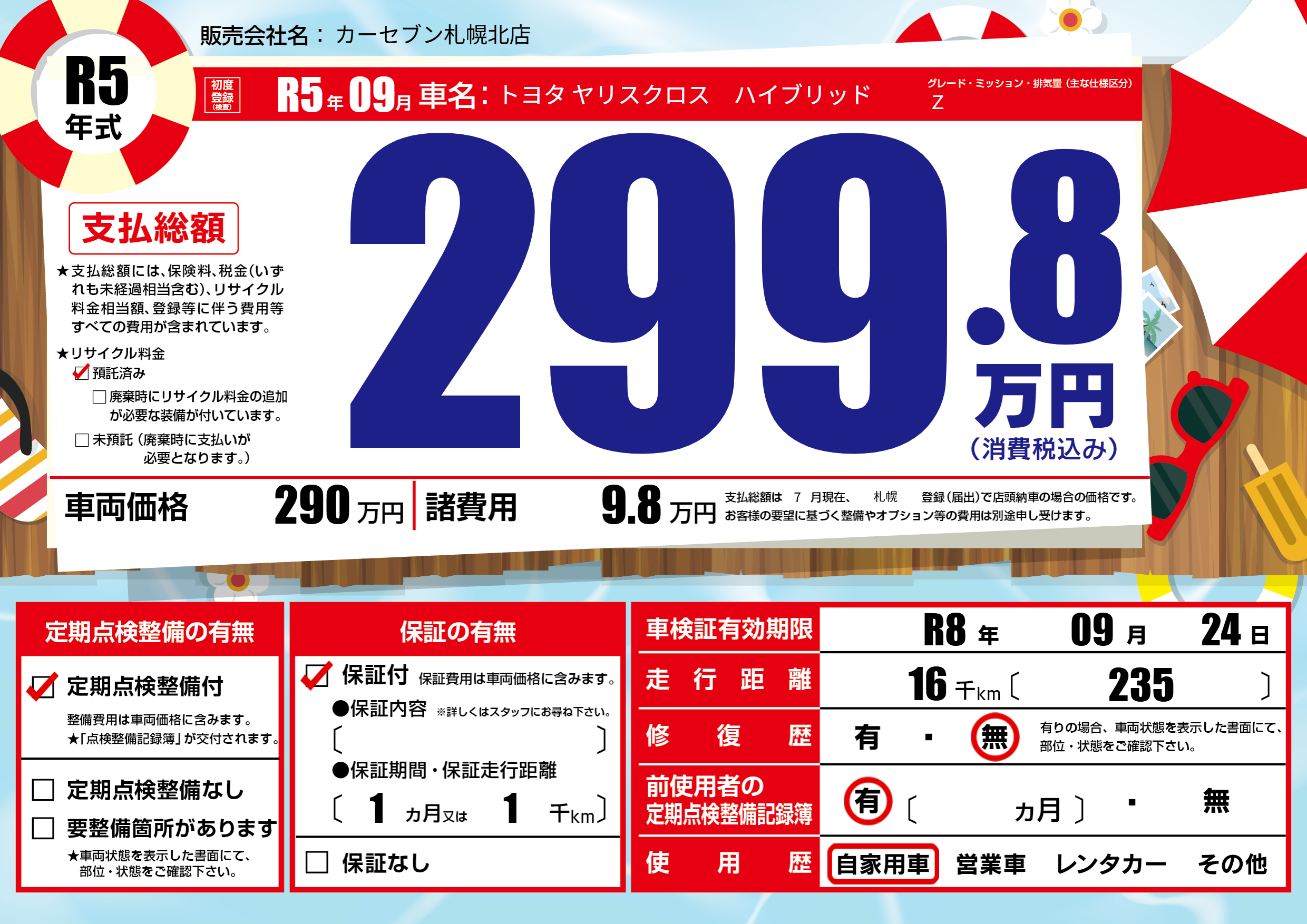 | 走行キロ | 1.6万km | 初年度登録 | R5年09月 |