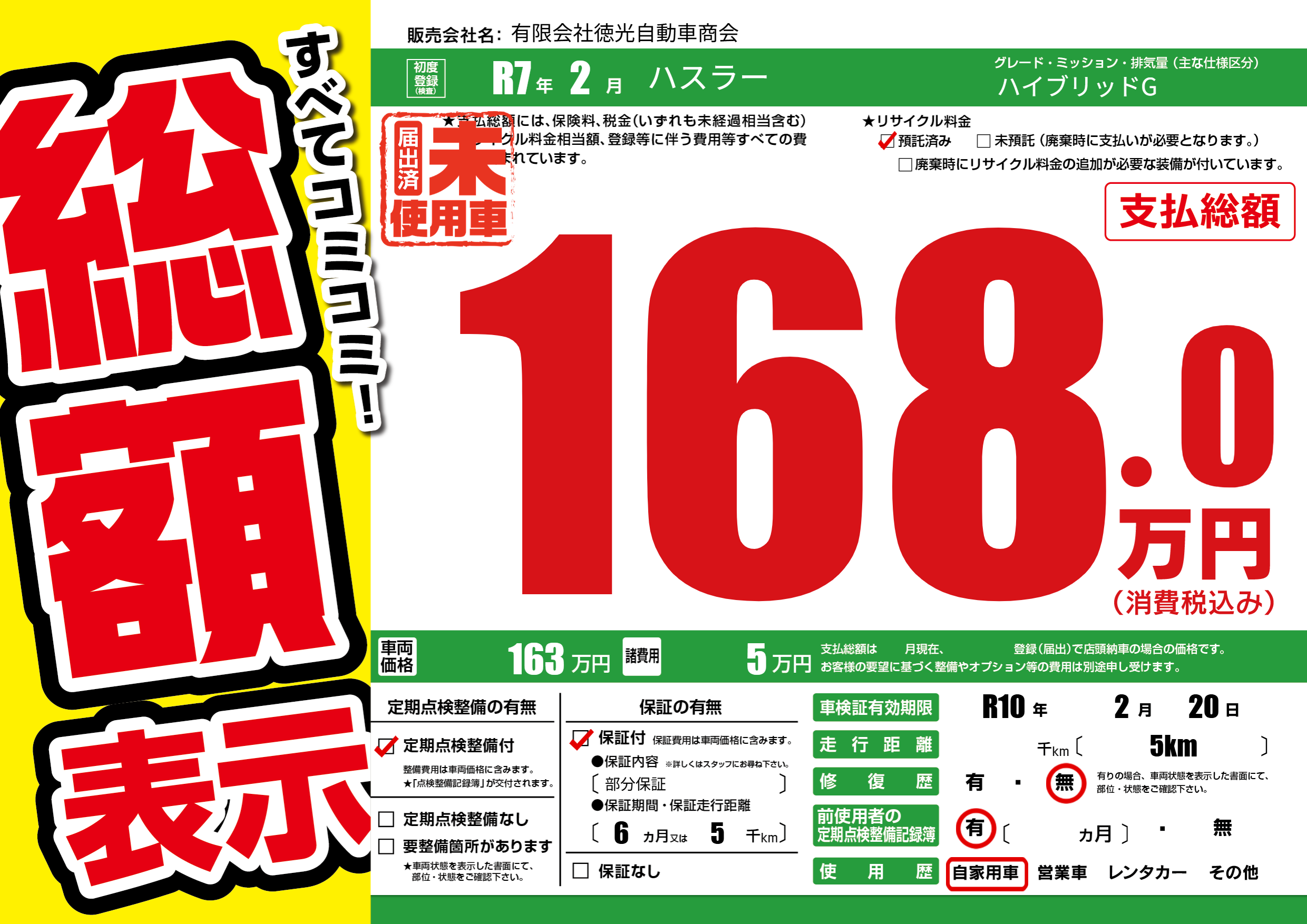 | 車名 | ハスラー | グレード ミッション 排気量 |