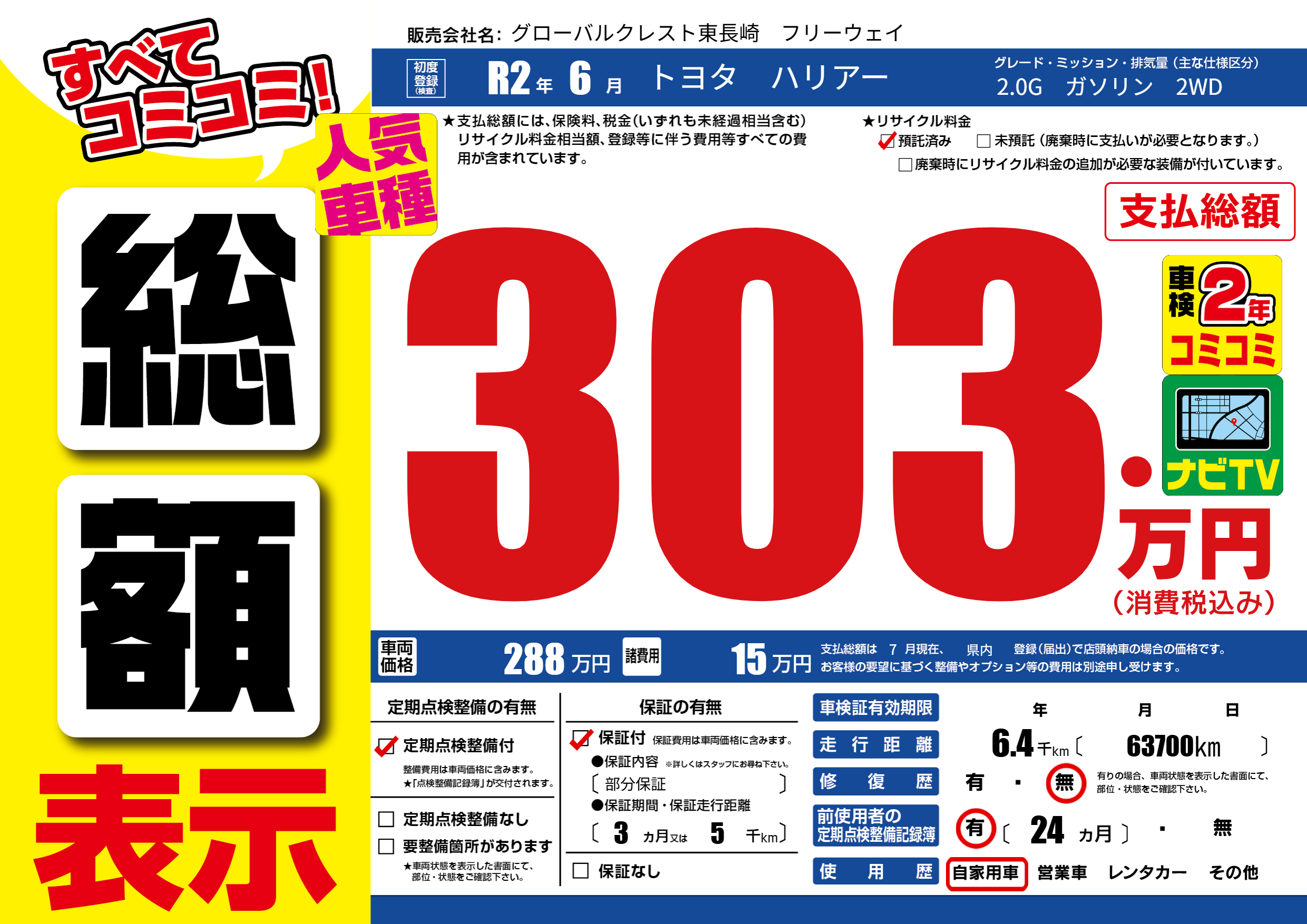 | 走行キロ | 0.6万km | 初年度登録 | R2年6月 |