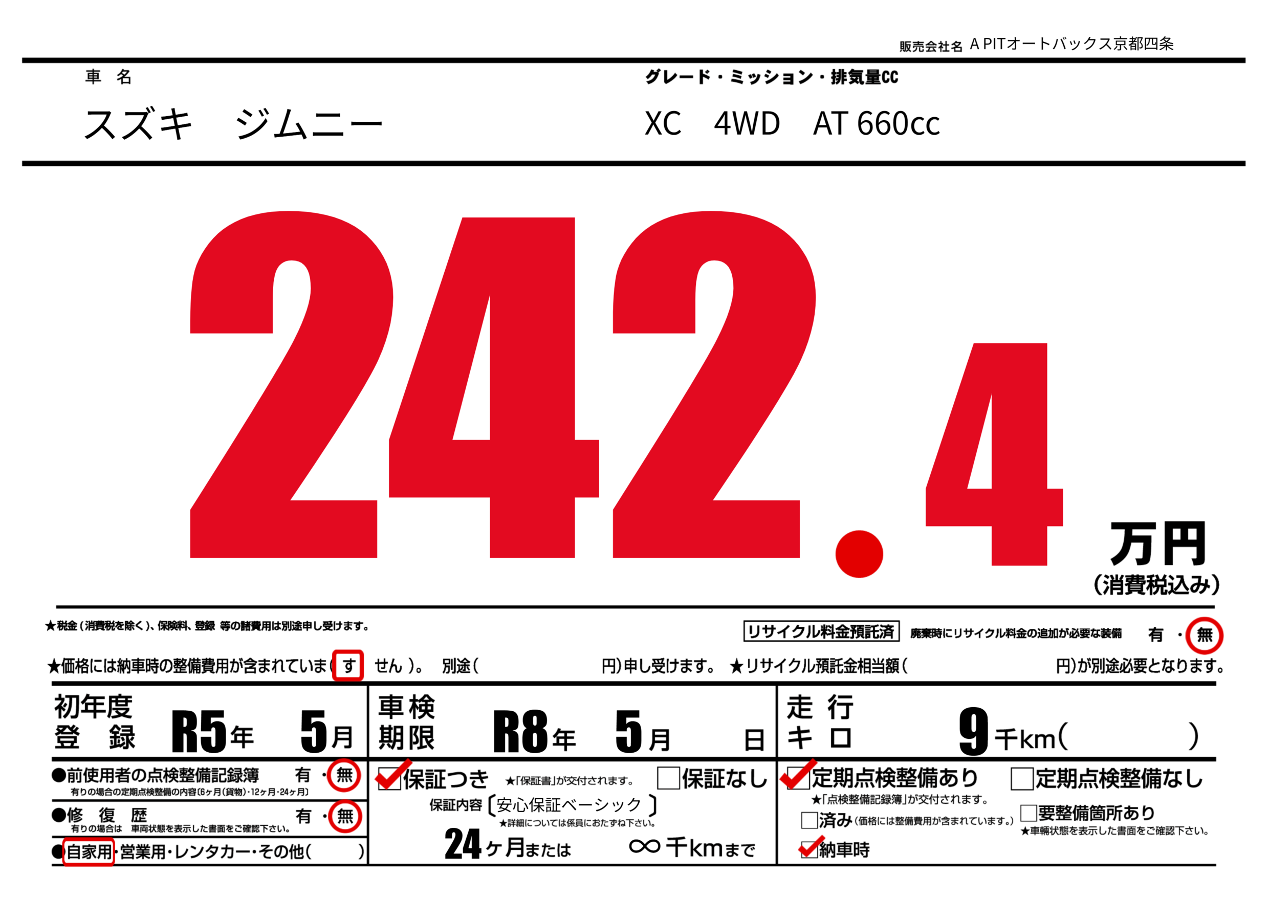 | 車検制限 | R8年 5月 - 日 | ||