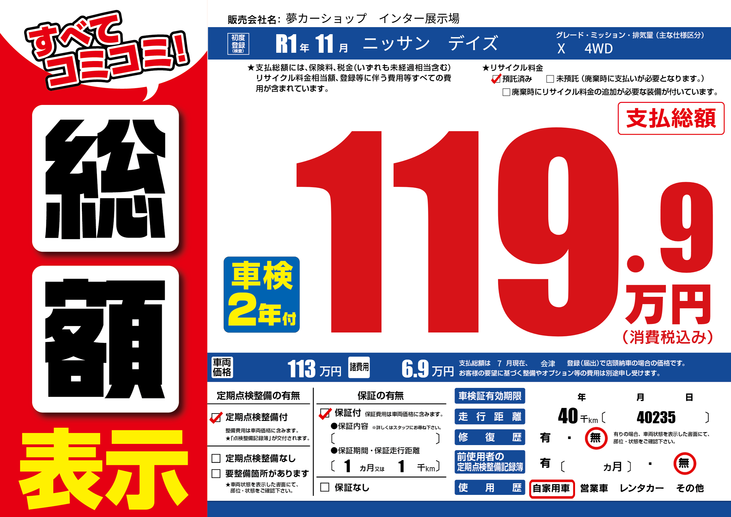 | 定期点検整備 | 定期点検整備あり | ||