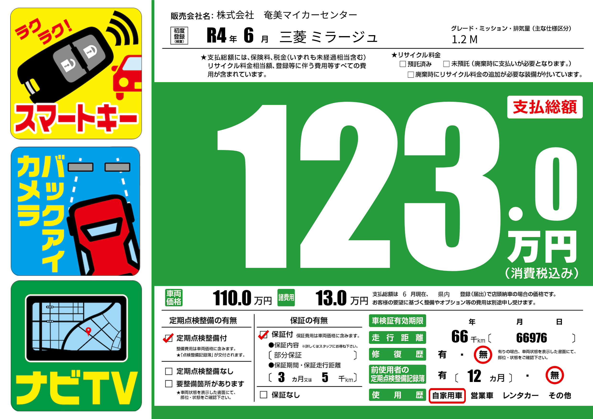 | 走行キロ | 6.6万km | 初年度登録 | R4年6月 |