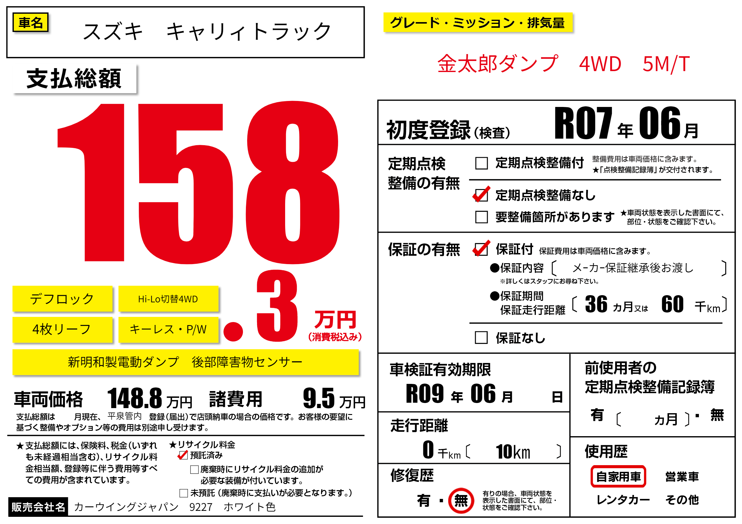 | 走行キロ | - | 初年度登録 | R07年06月 |