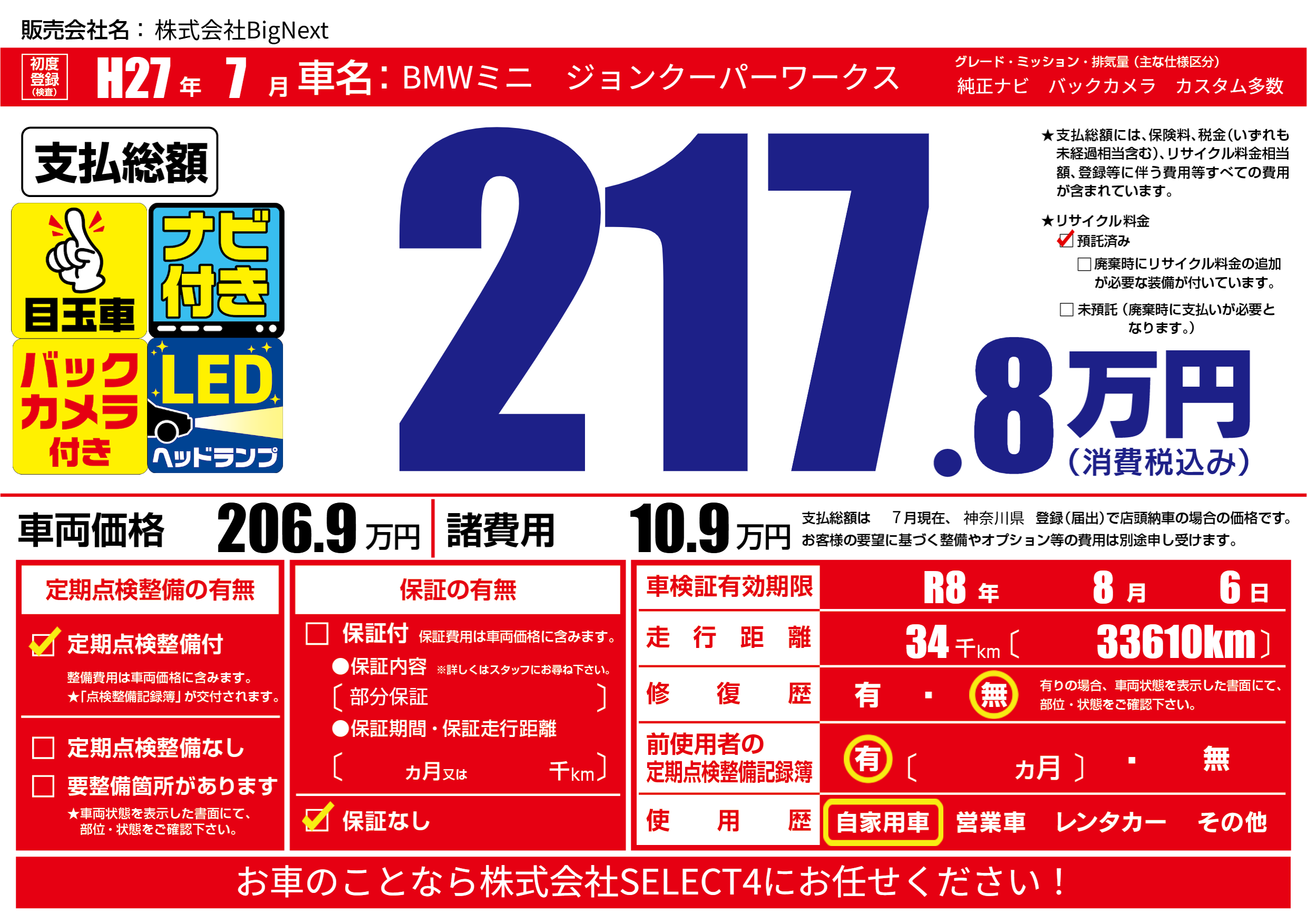 | 初年度登録 | H27年7月 | ||